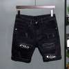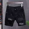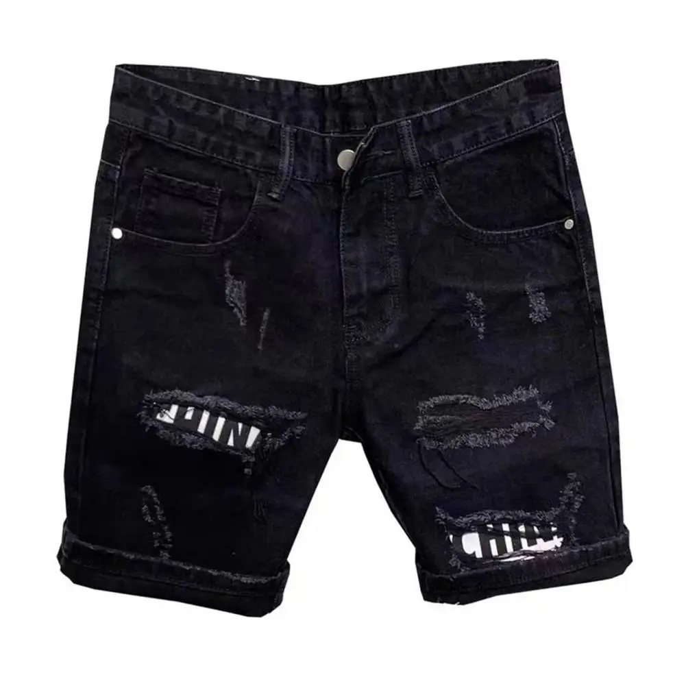 Designed for the man, these ripped patchwork slim-fit denim shorts feature a solid color design with hole decorations for a trendy touch. The straight and fine workmanship of the denim and cotton fabrics exudes quality and durability.