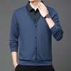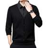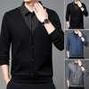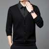 Men Fall Winter Sweater Lapel Sleeveless Single-breasted Solid Color Fake Two-piece Elastic Buttons Casual Striped Plus Size Mid Length Men Casual Cardigan Sweater