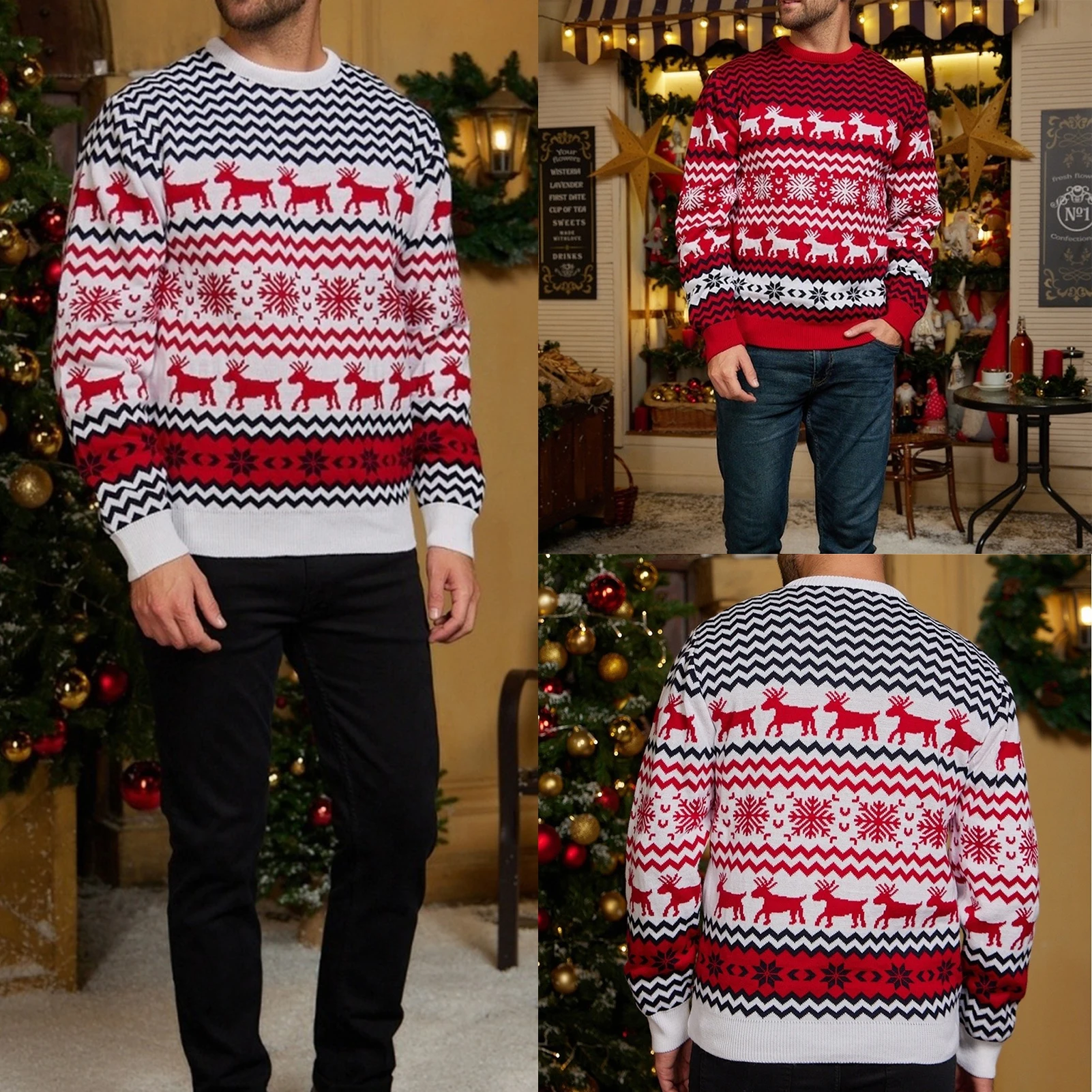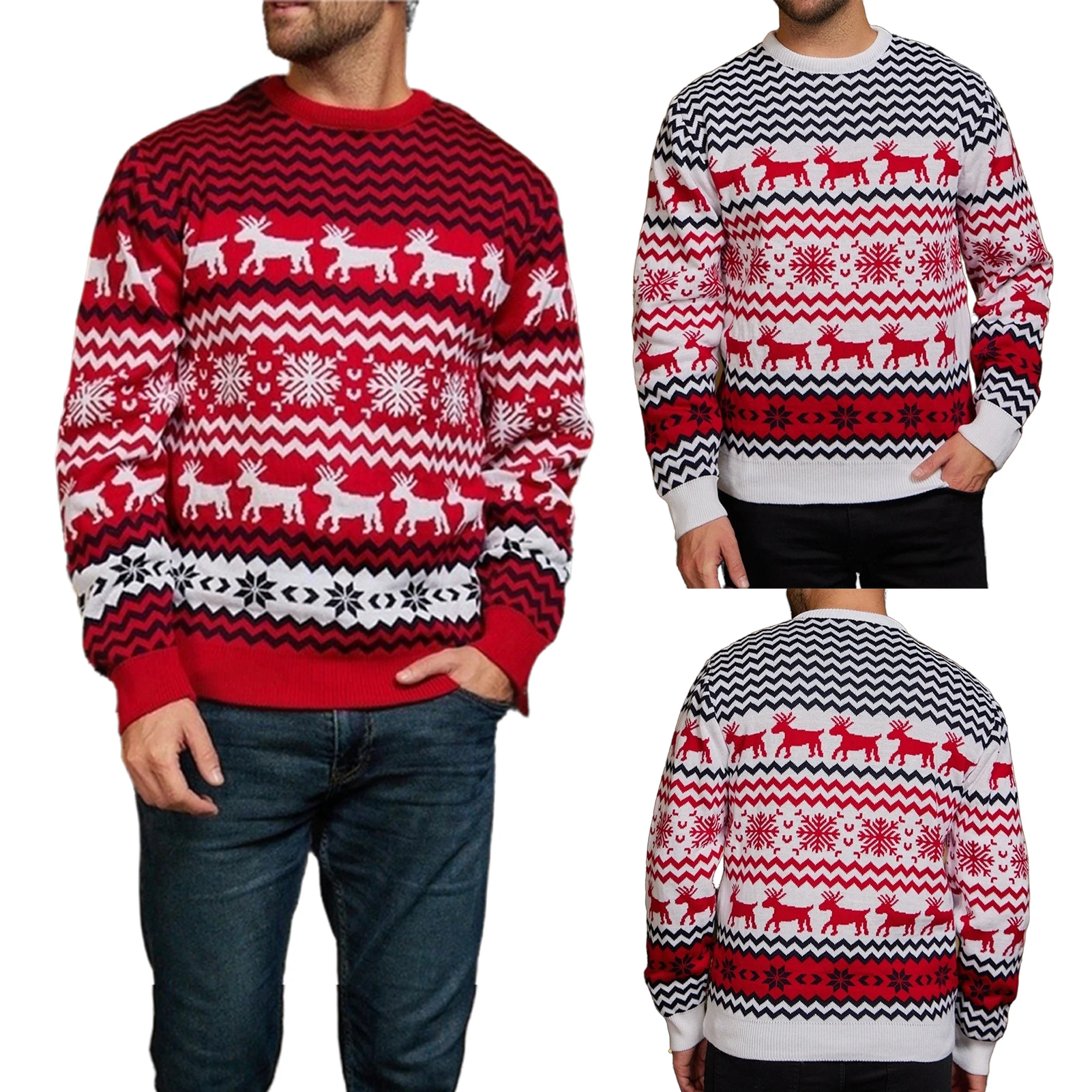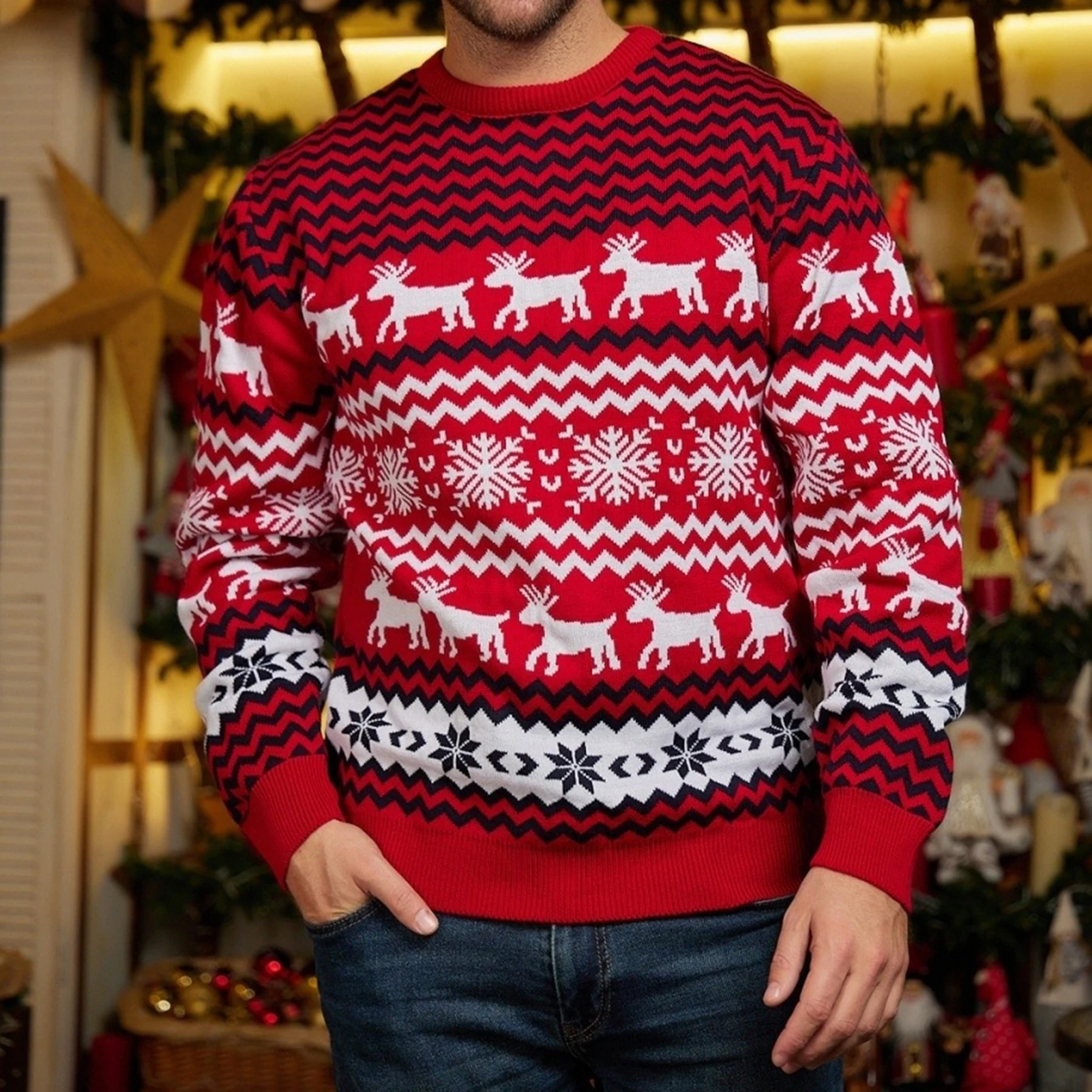 Men Knitwear Sweater Loose Fit Snowflake Elk Pattern Crochet Pullovers Long Sleeve Christmas Style Crew Neck Daily Outfit