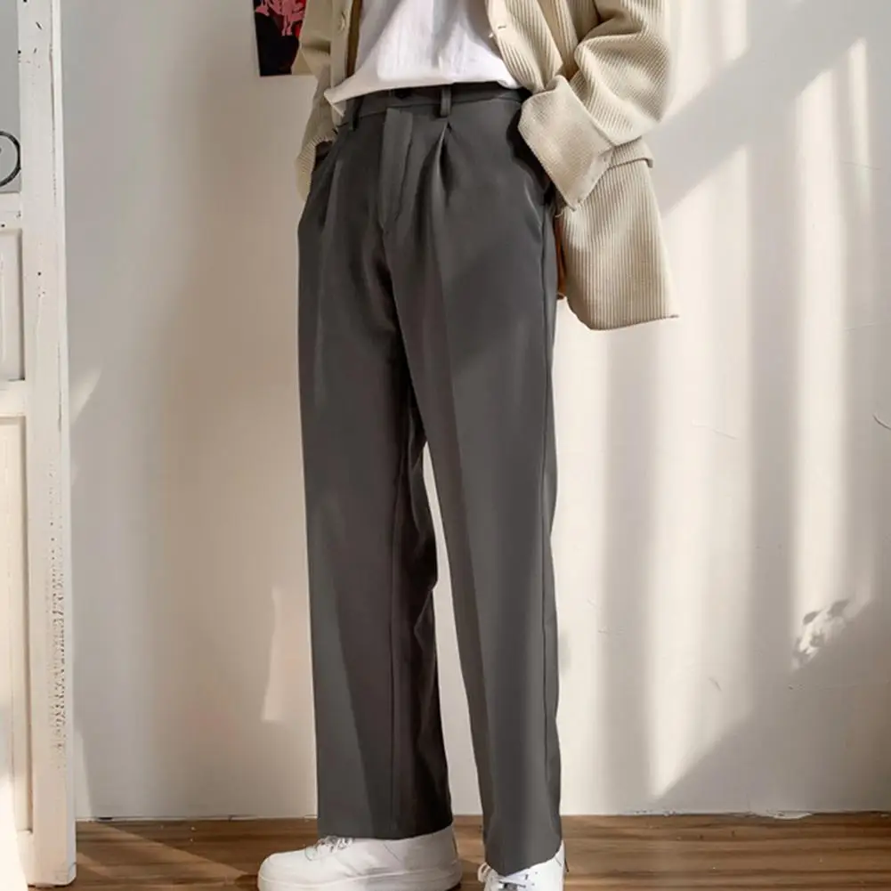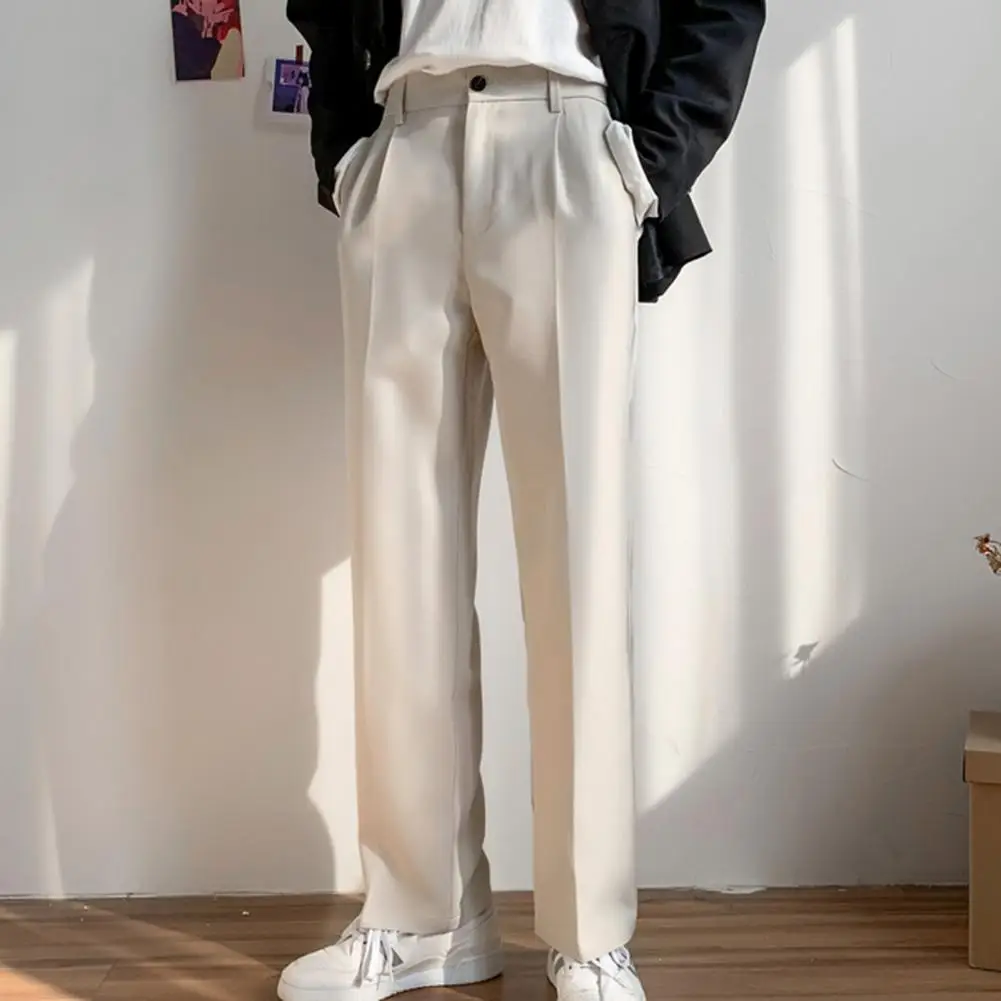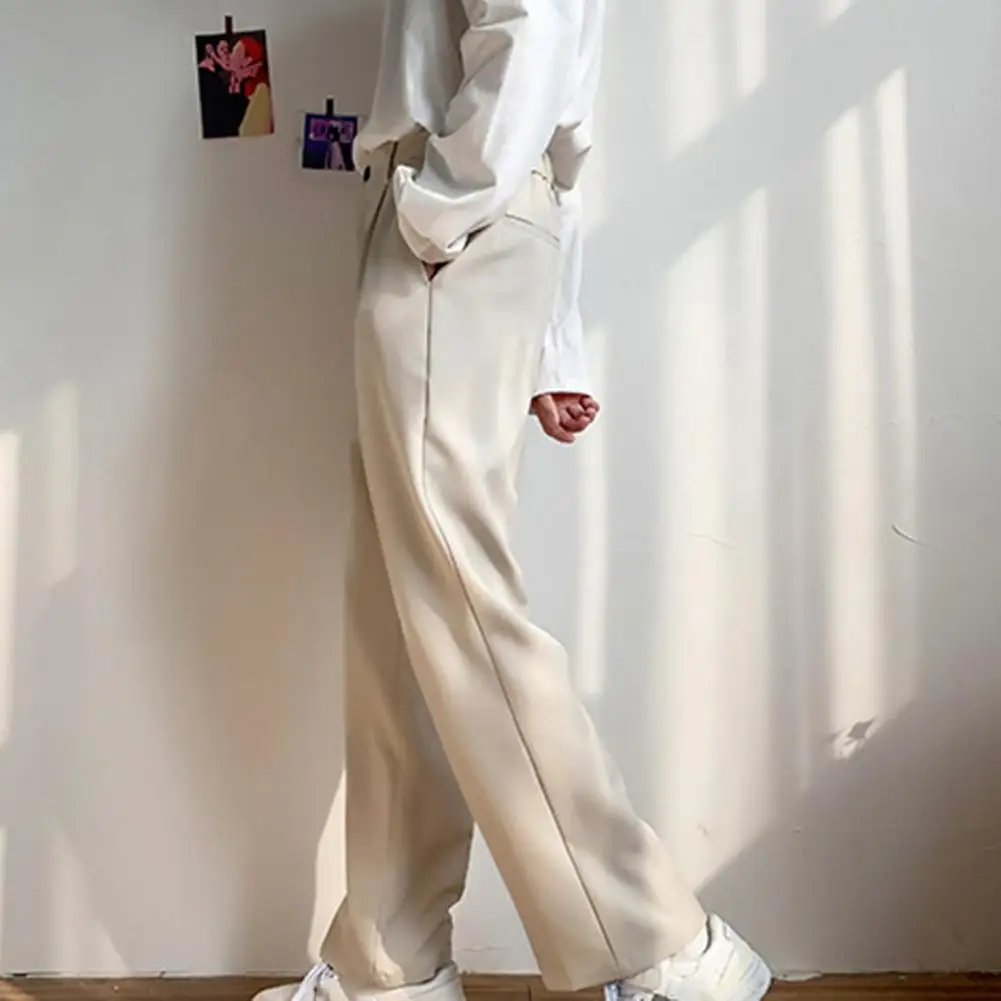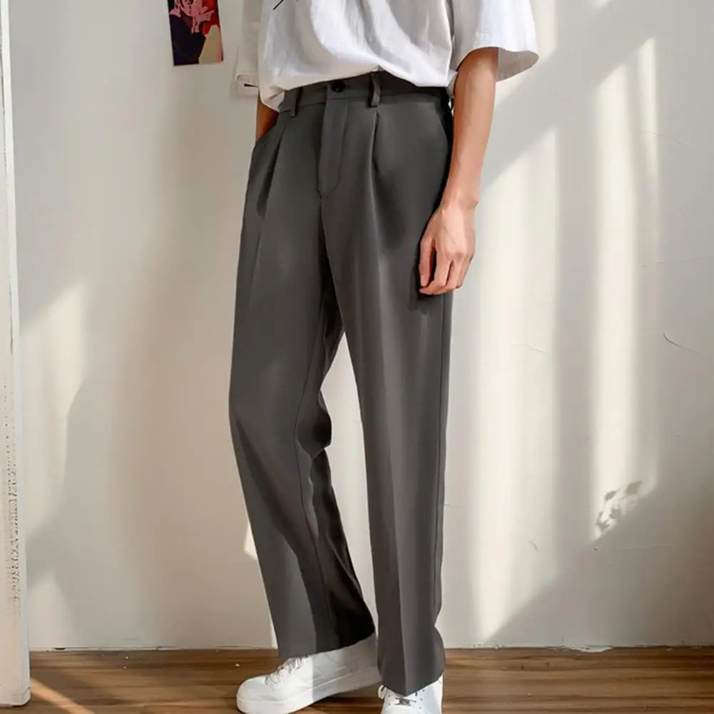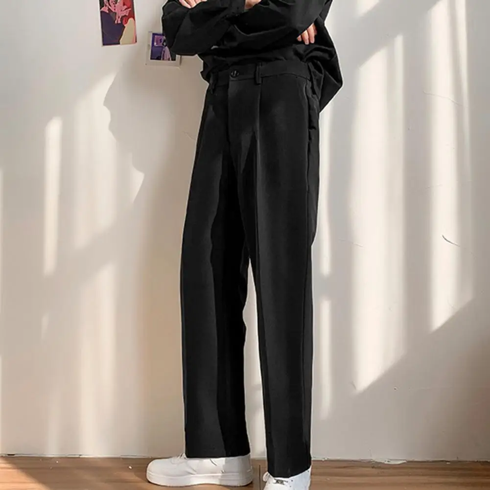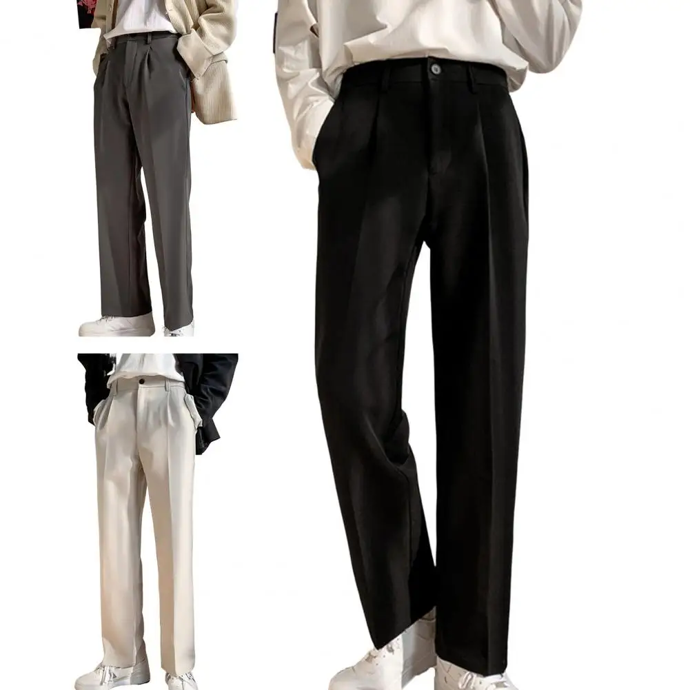 Men Pants Straight Loose Solid Color Wide Leg Anti-wrinkle Match Shirt Pockets Zipper Deep Crotch Suit Pants Men Clothes