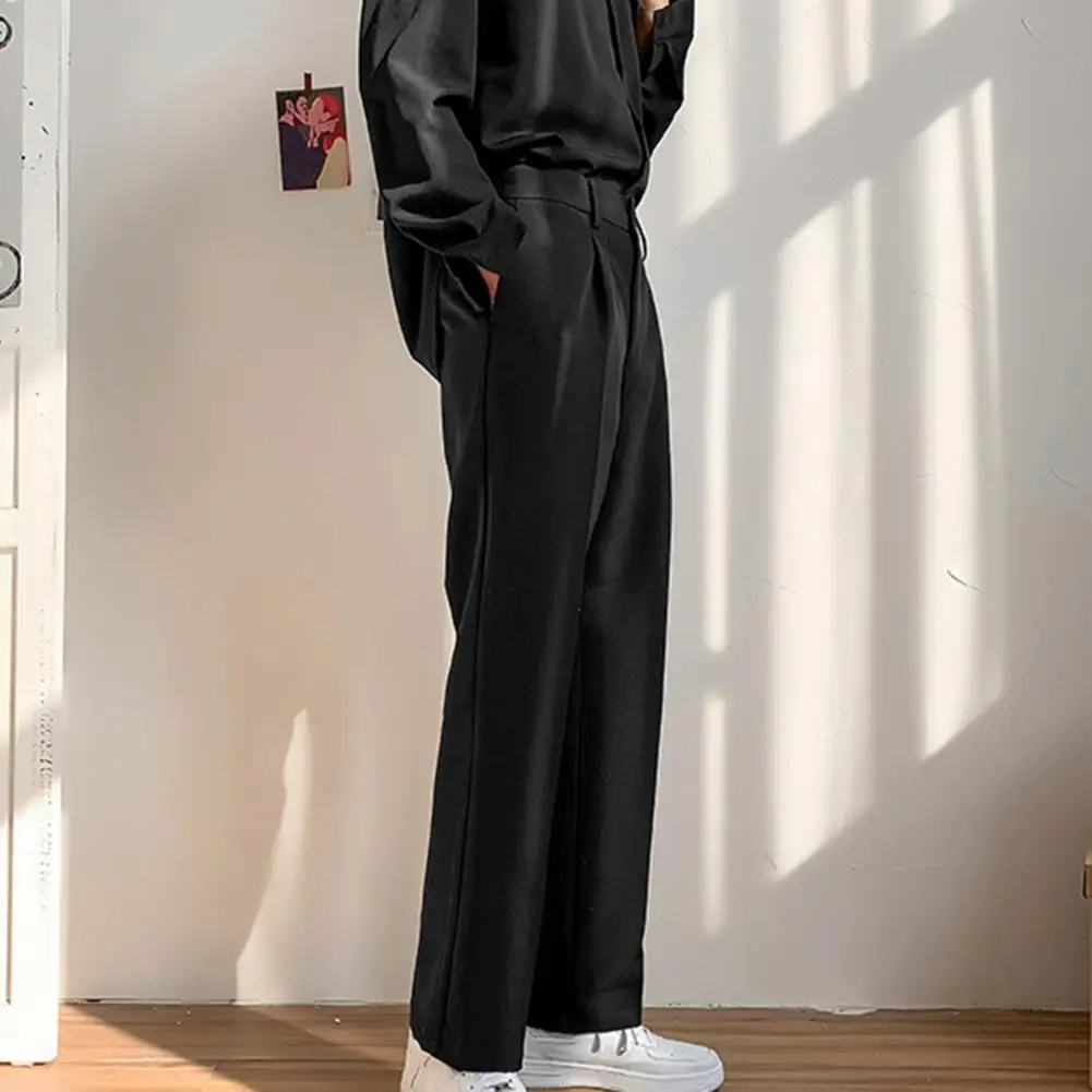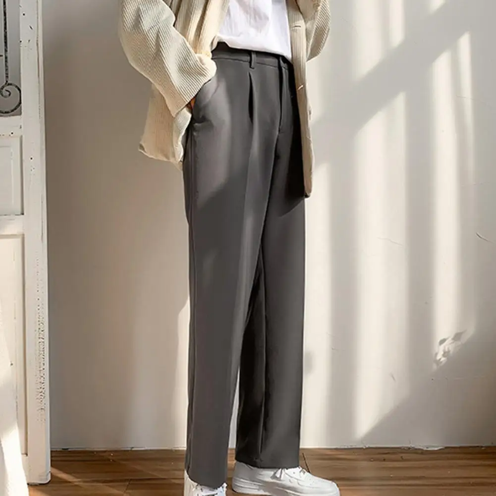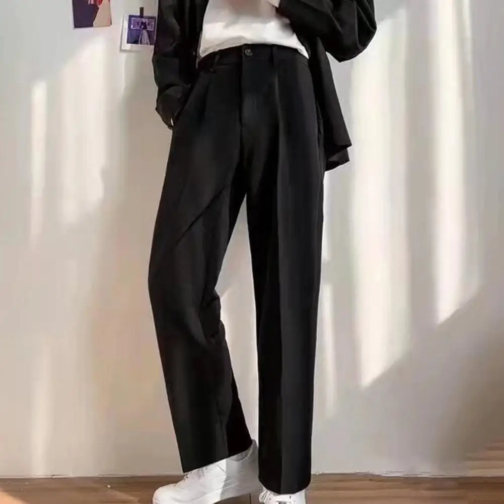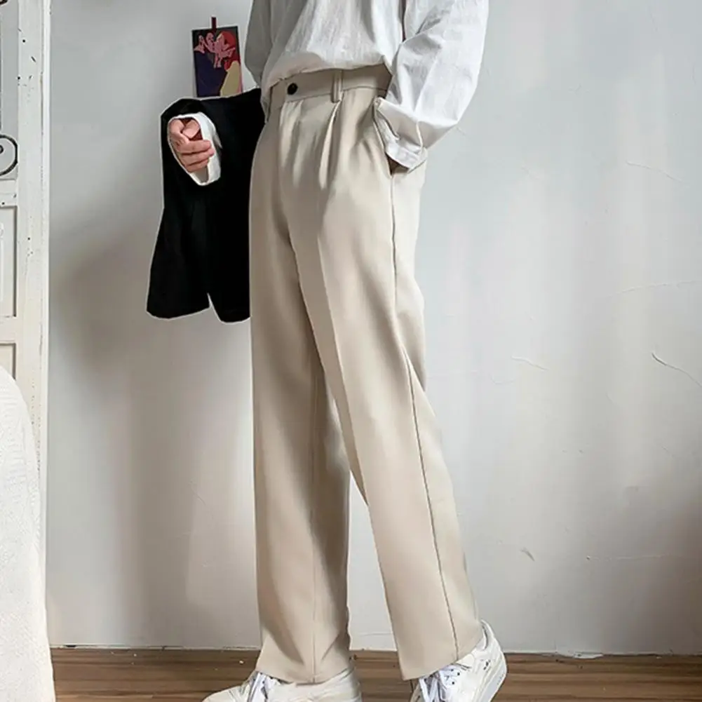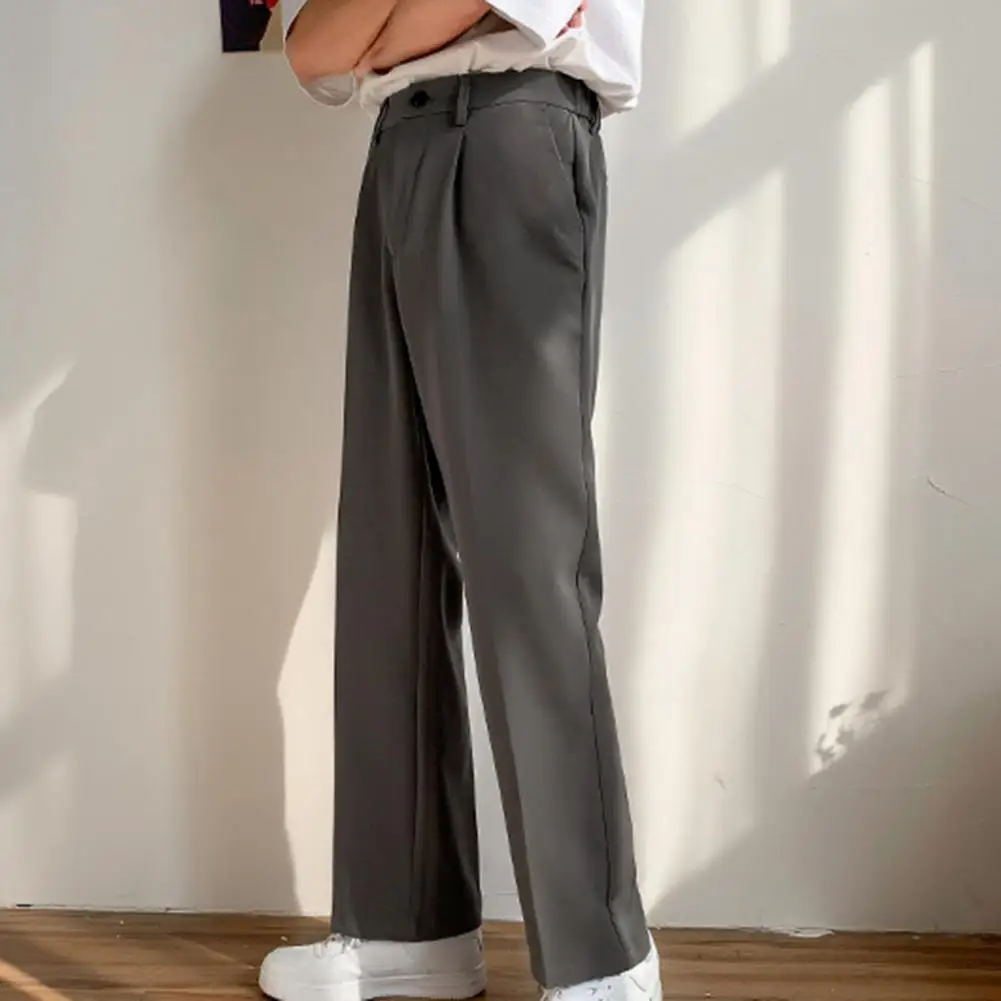 Men Pants Straight Loose Solid Color Wide Leg Anti-wrinkle Match Shirt Pockets Zipper Deep Crotch Suit Pants Men Clothes