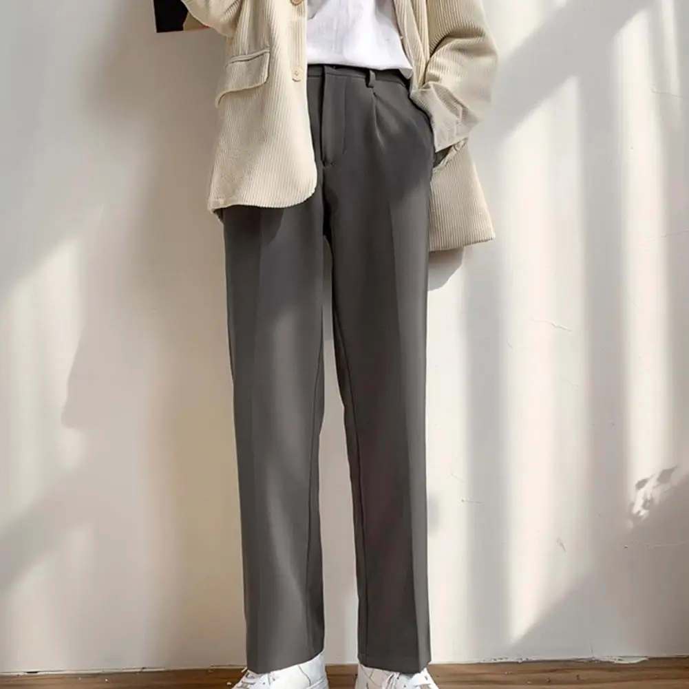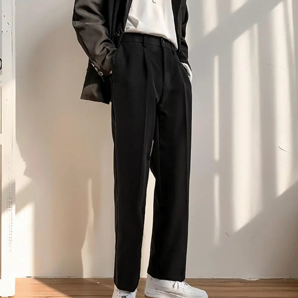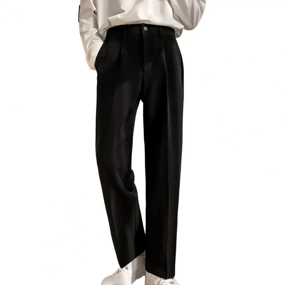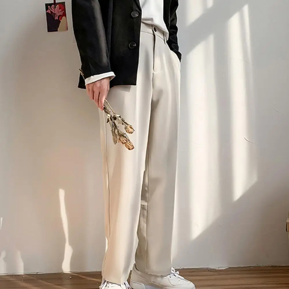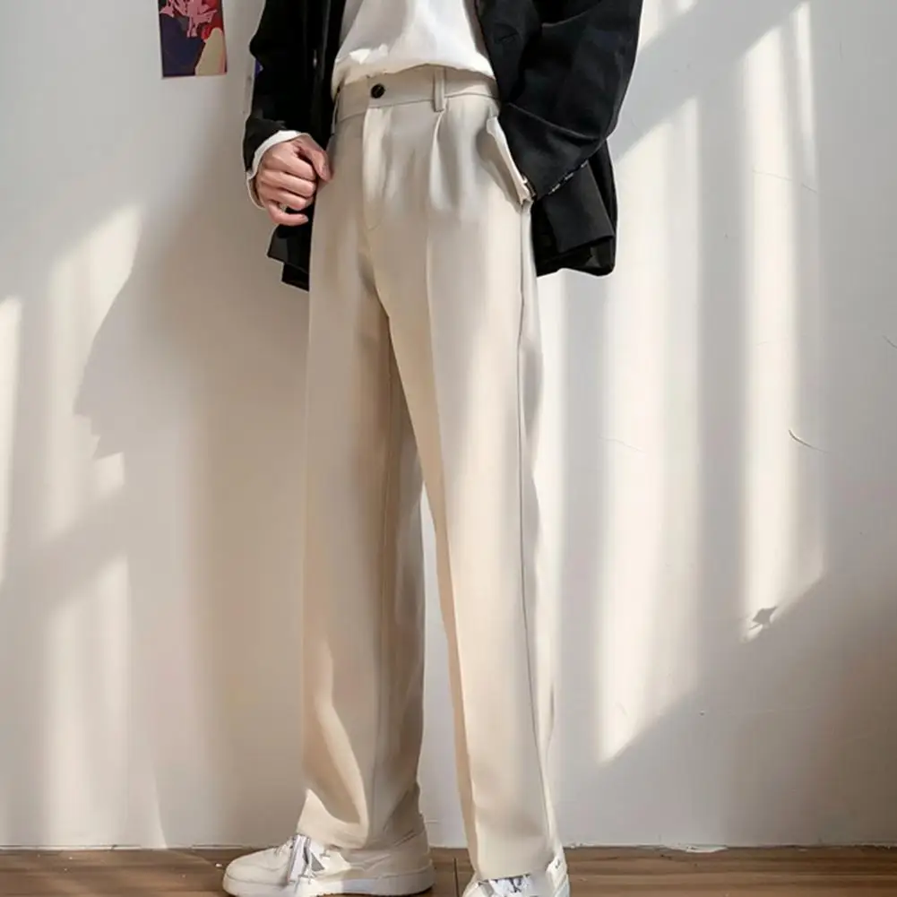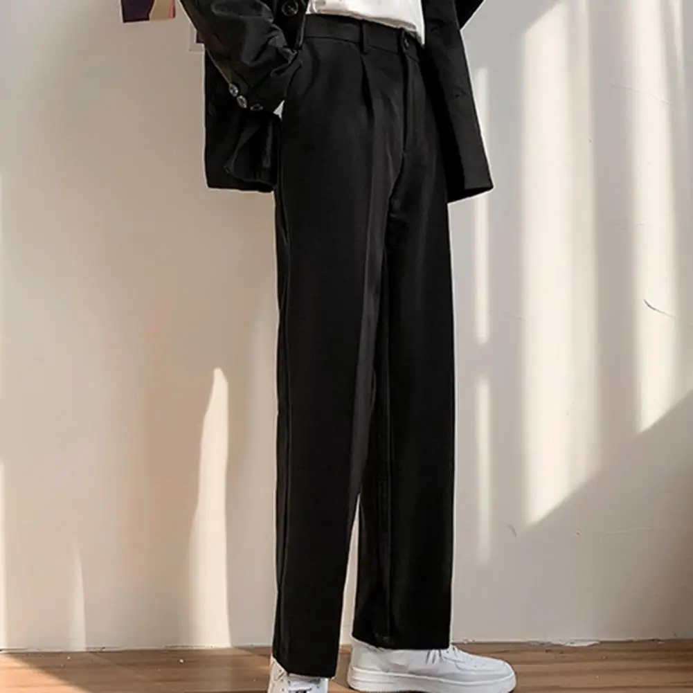Men Pants Straight Loose Solid Color Wide Leg Anti-wrinkle Match Shirt Pockets Zipper Deep Crotch Suit Pants Men Clothes