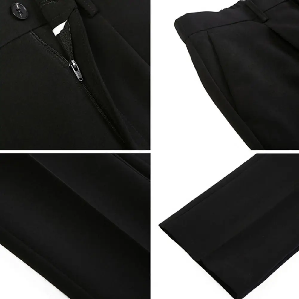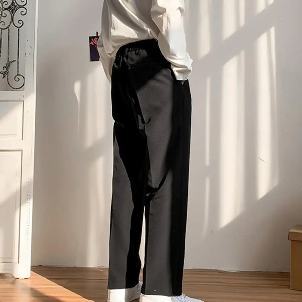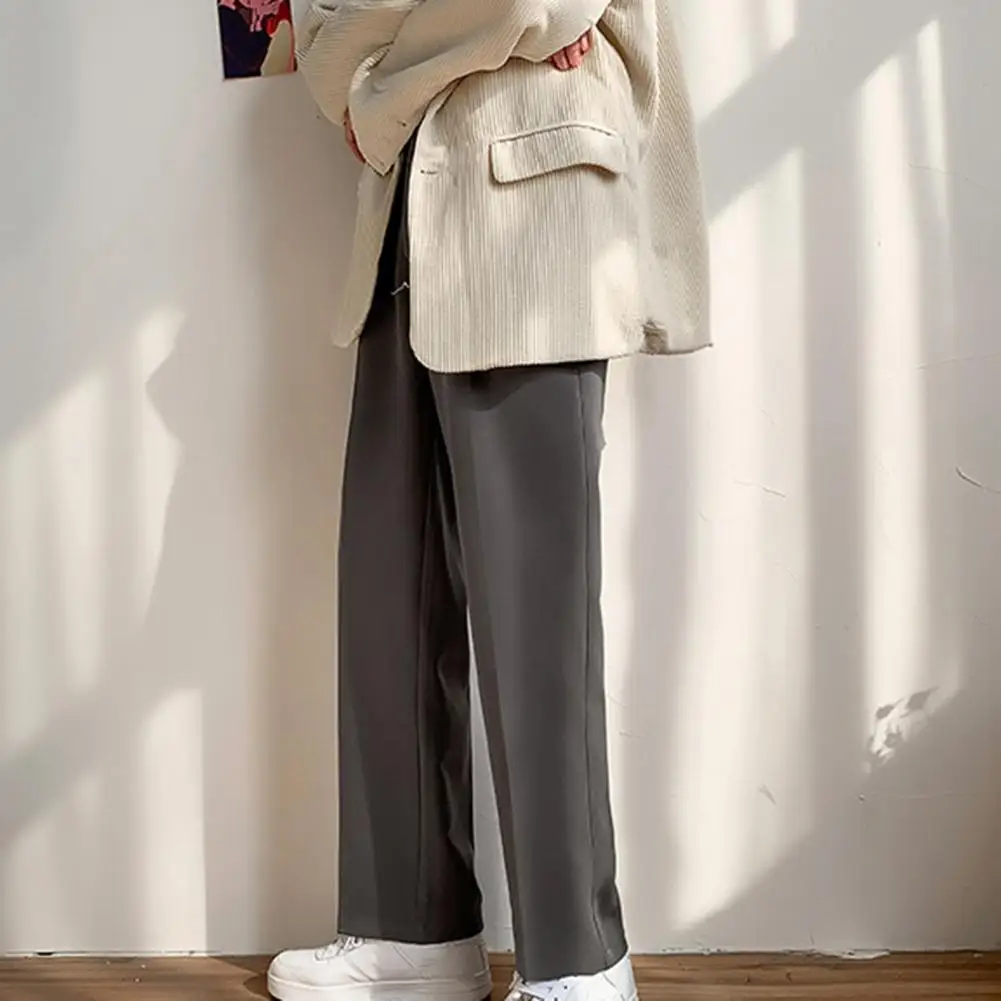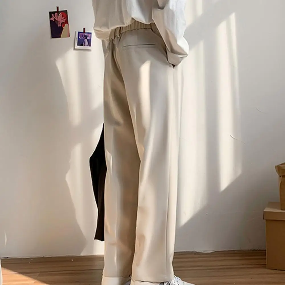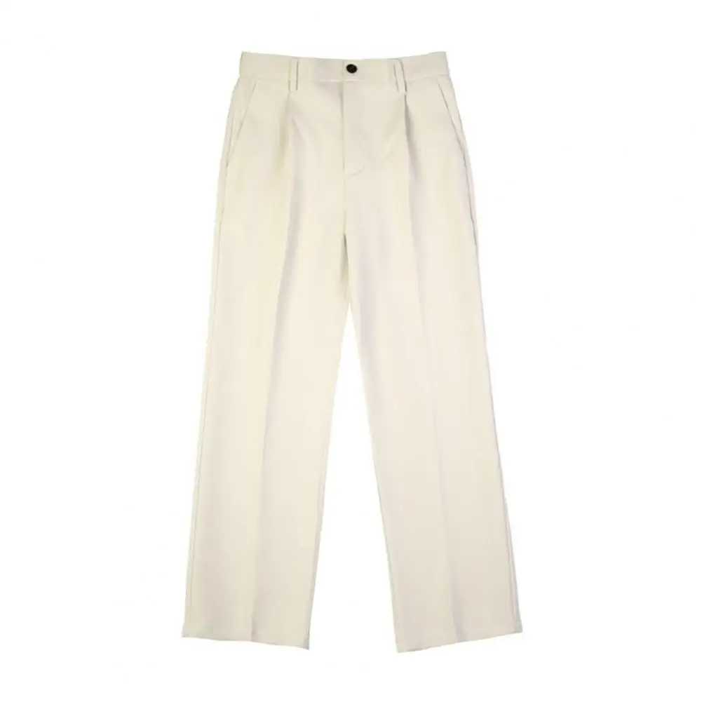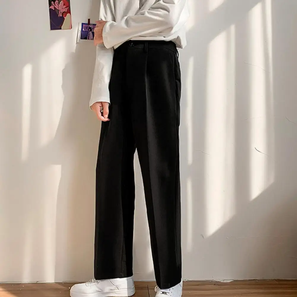 Men Pants Straight Loose Solid Color Wide Leg Anti-wrinkle Match Shirt Pockets Zipper Deep Crotch Suit Pants Men Clothes
