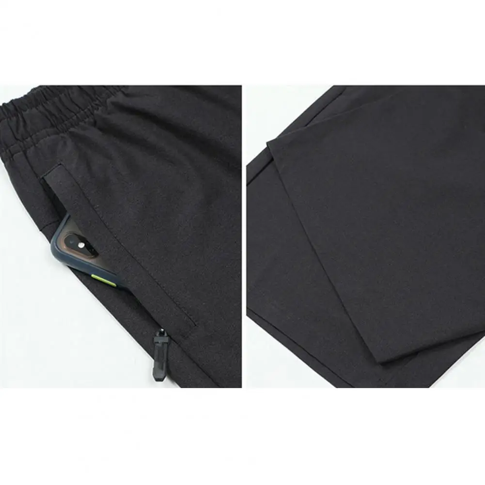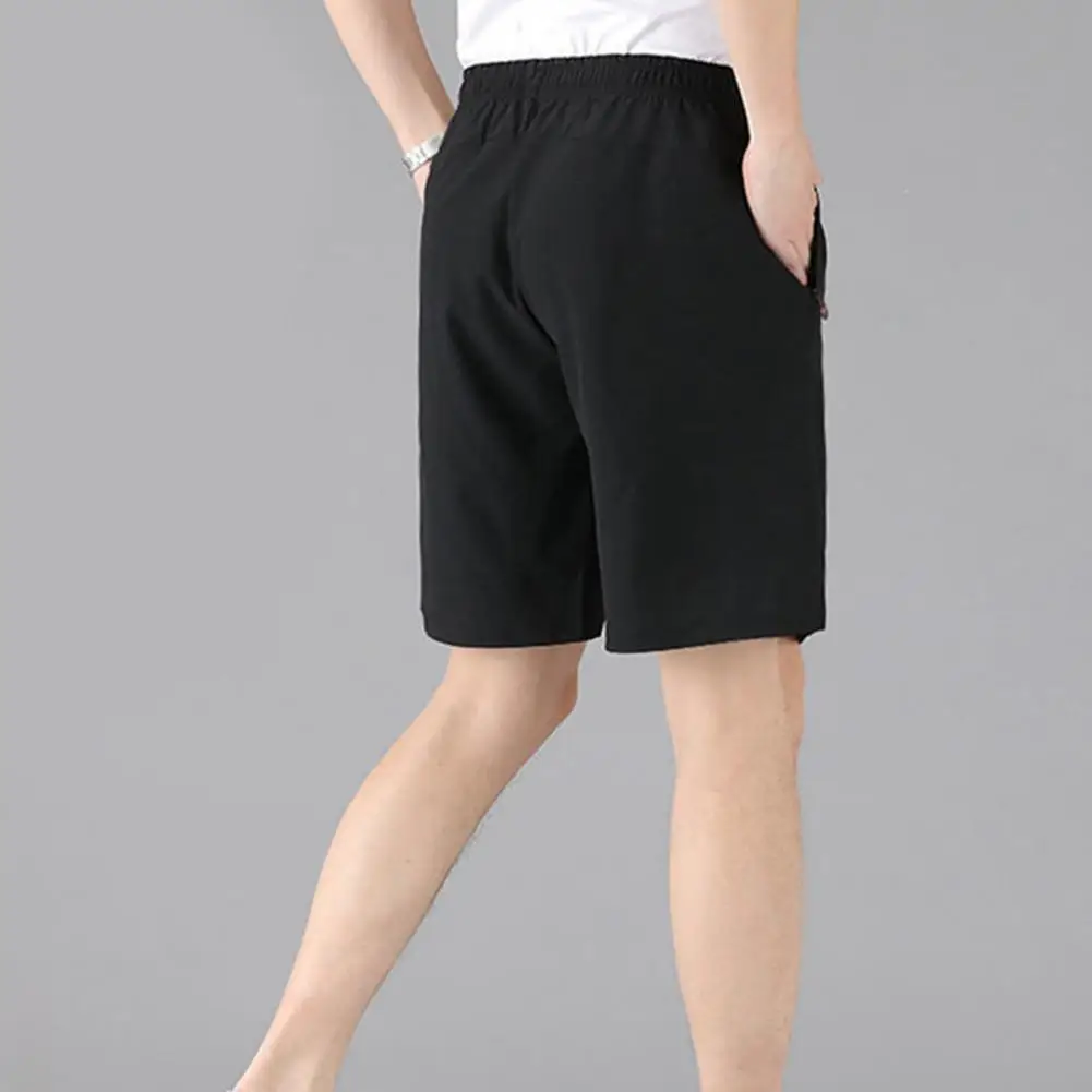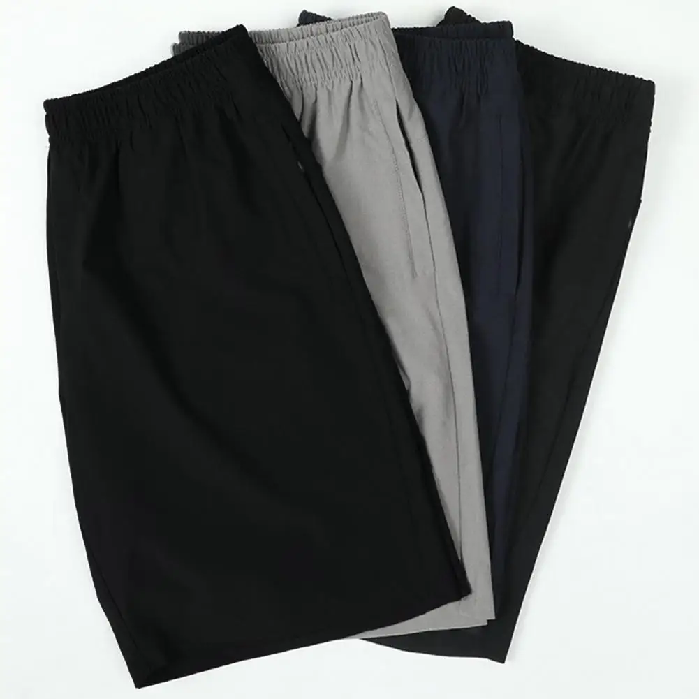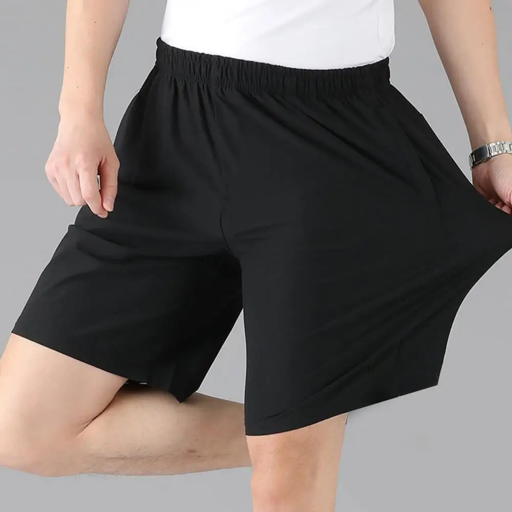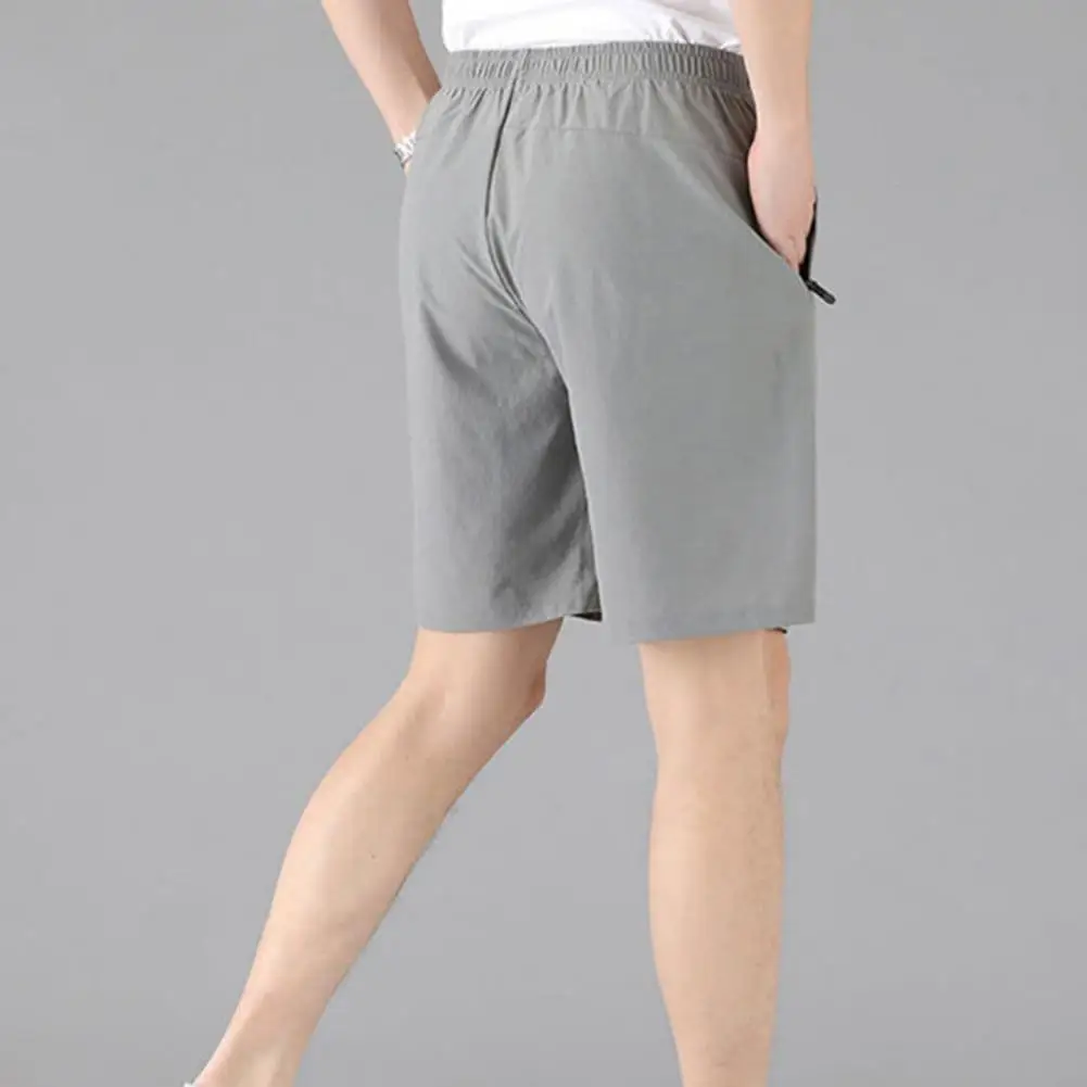 High-Waist Elastic Waistband Men Shorts Zipper Pockets Wide Leg Solid Color Mid-aged Ice Silk Sports Shorts