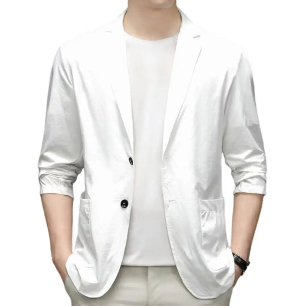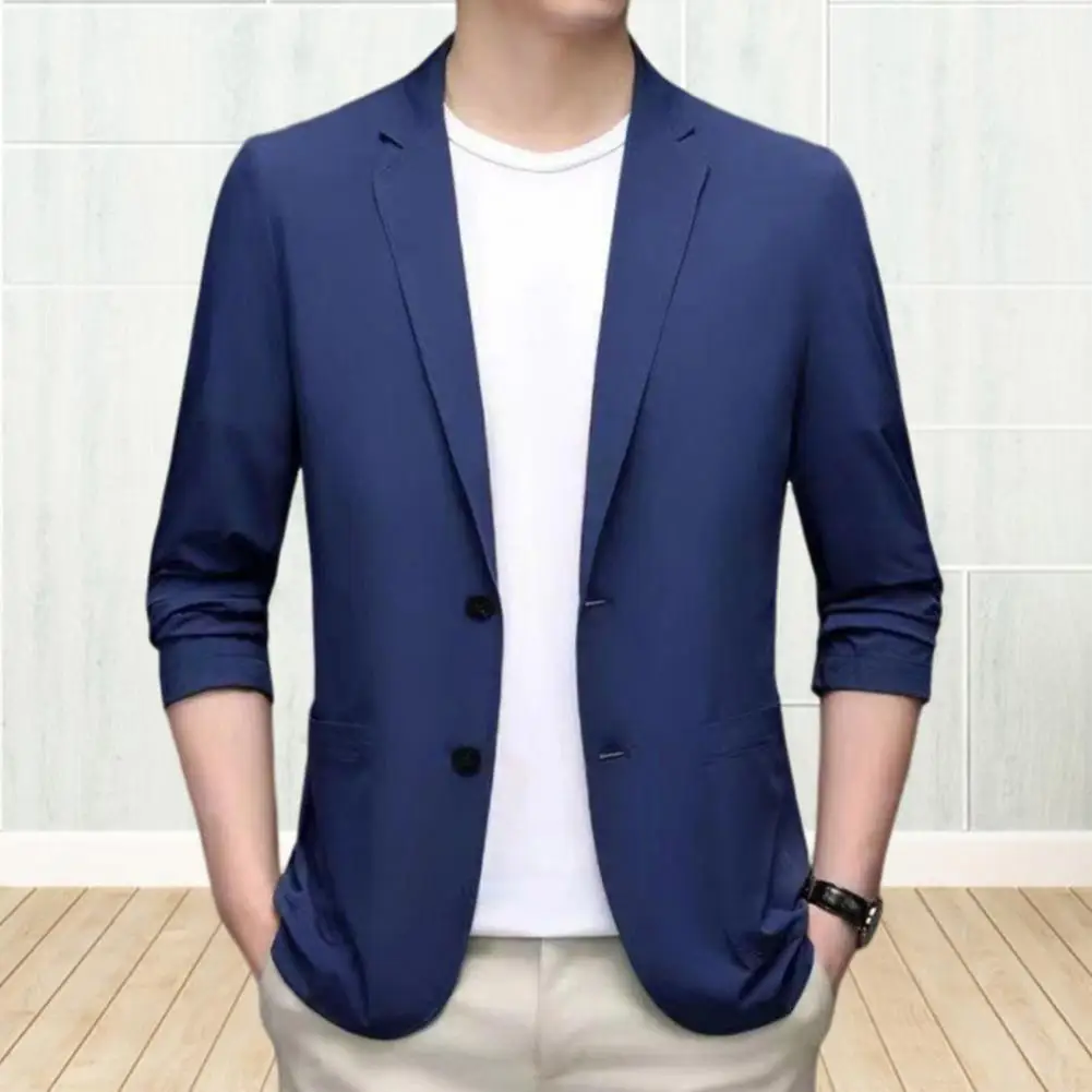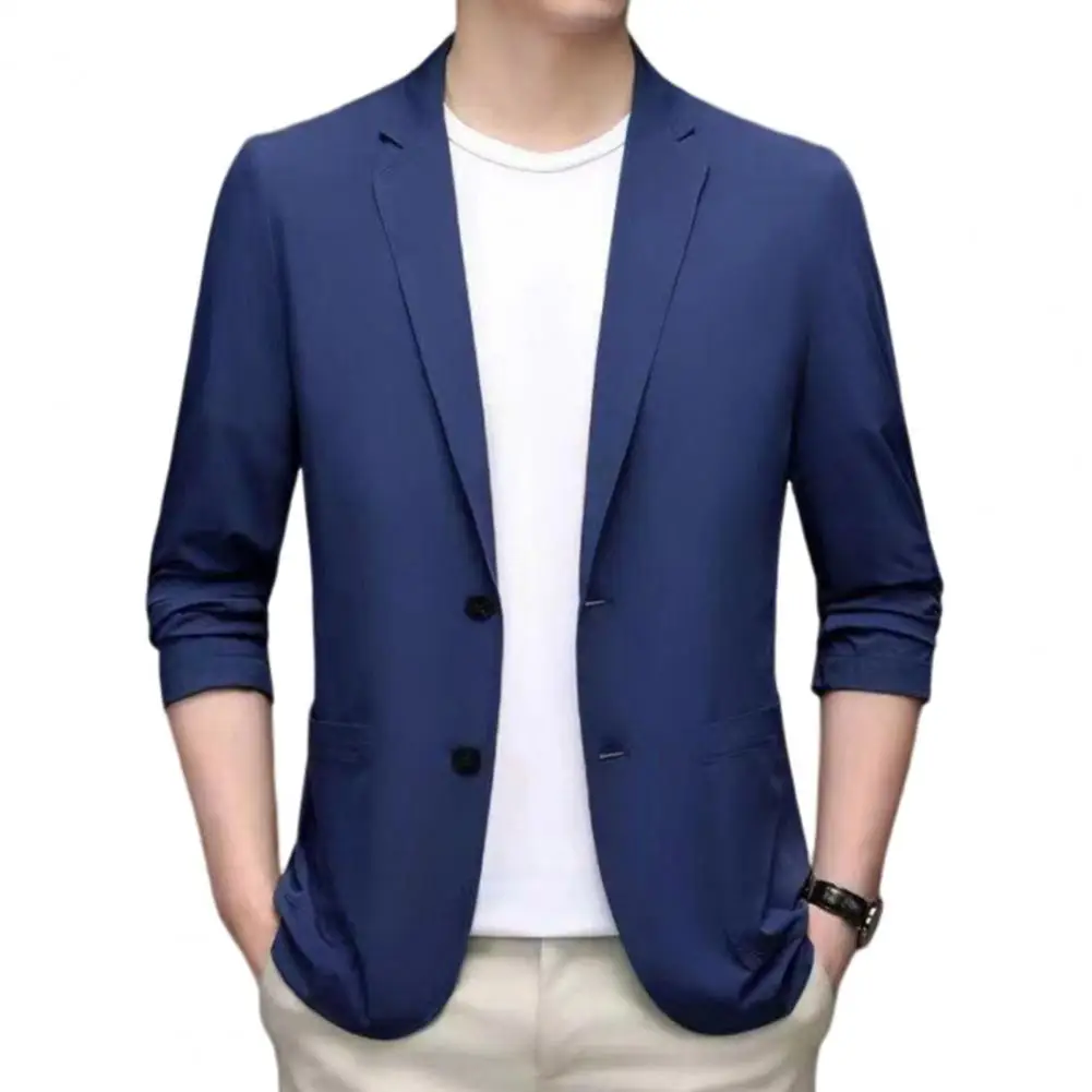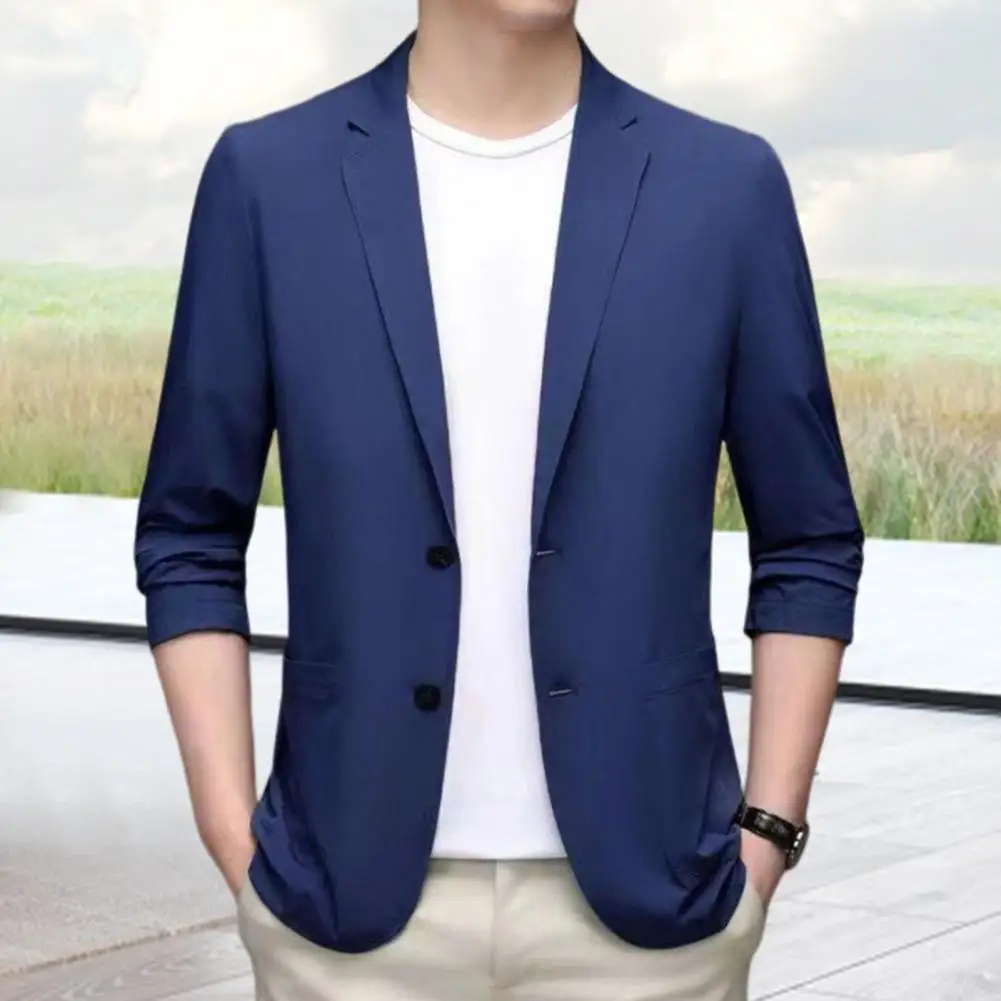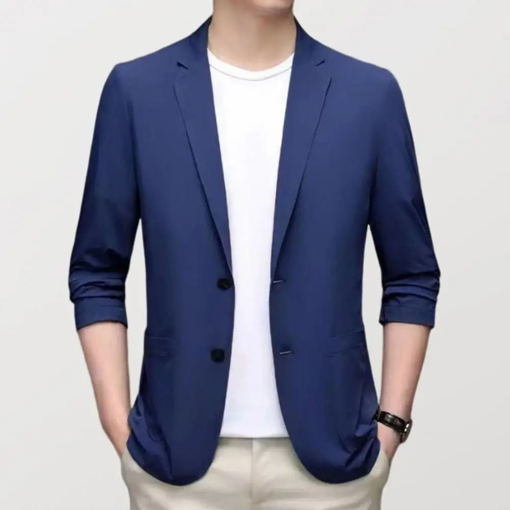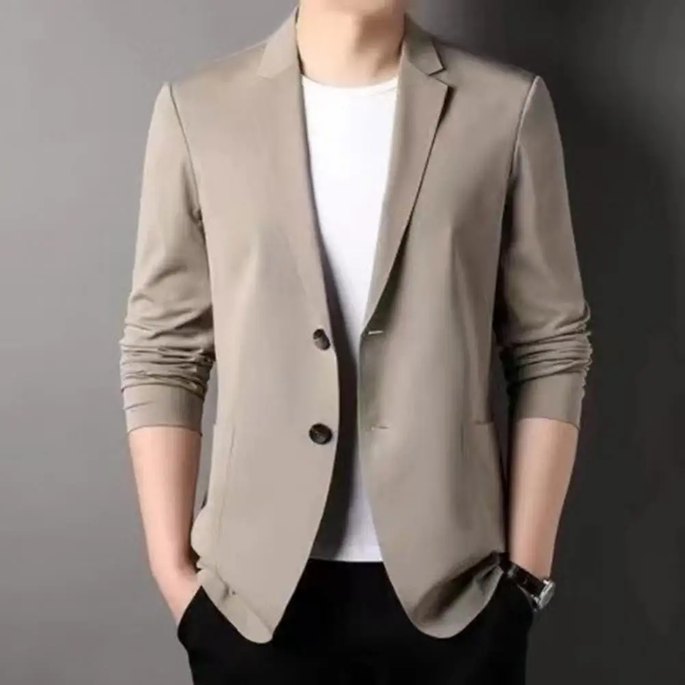 Men Suit Coat Lapel Long Sleeve Single Breasted Suit Jacket Solid Color Pockets Business Formal Suit Coat Workwear