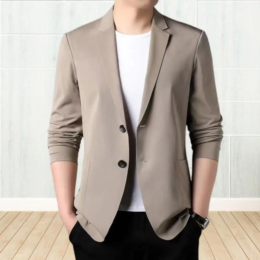 Make a statement and exude confidence with this stylish suit coat that adds a touch of luxury to your ensemble. The solid color lapel and double-button design offer a sleek and versatile aesthetic suitable for all seasons.
