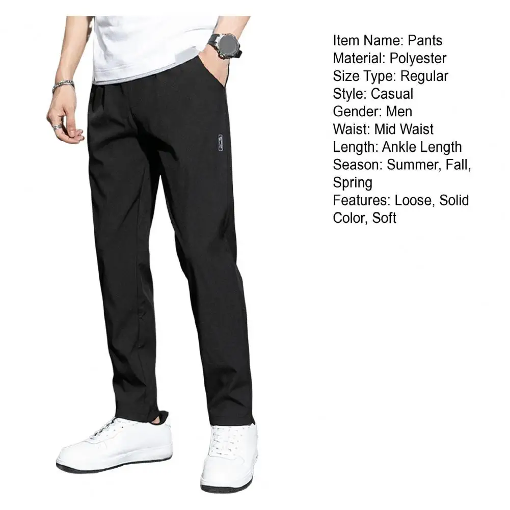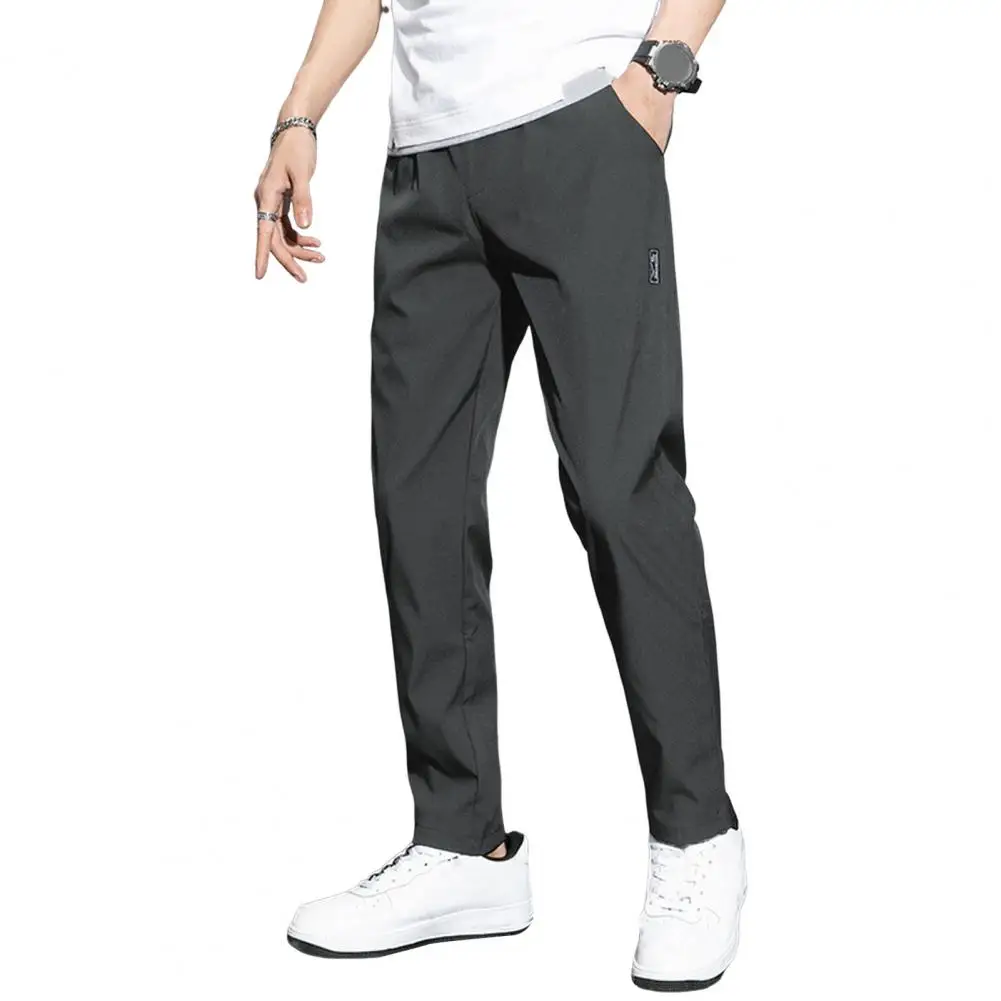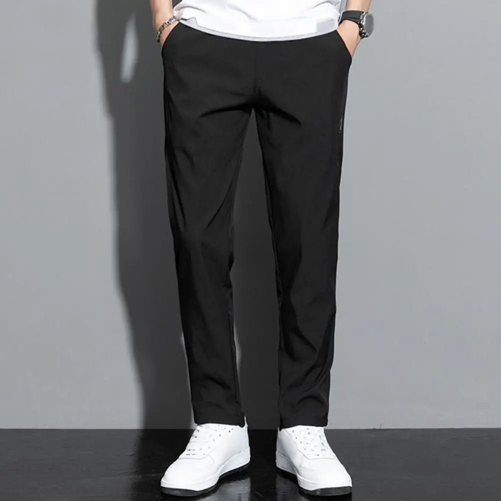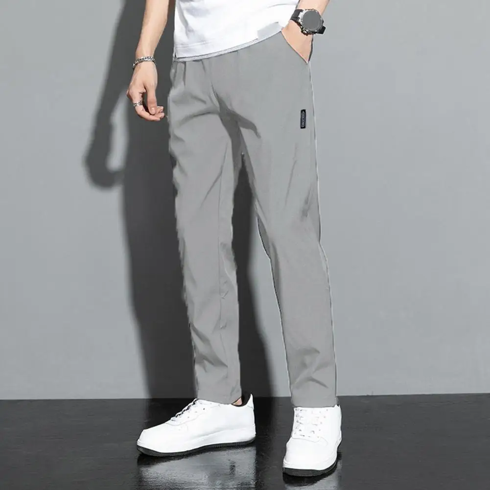 Men Trousers Solid Color Pants Breathable Quick Dry Men’s Straight Pants with Stretchy Waistband Pockets Lightweight for Comfort