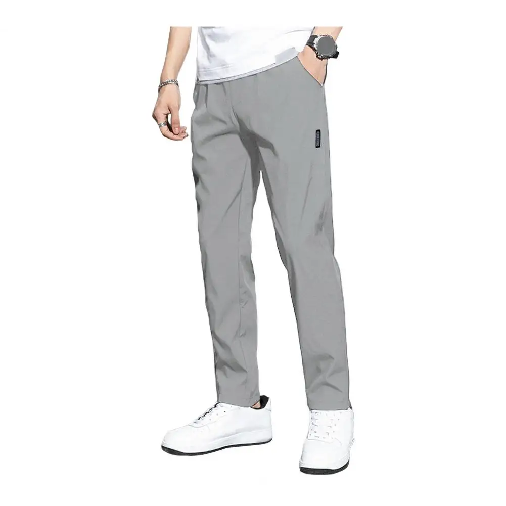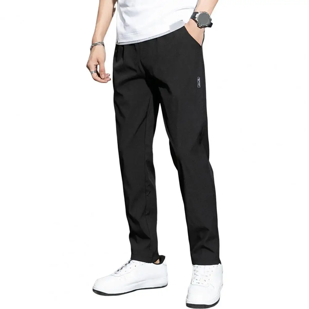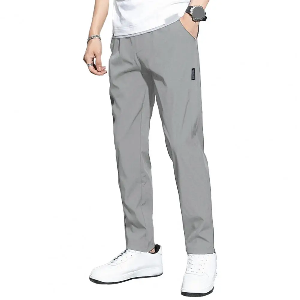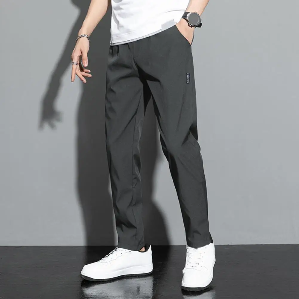 Men Trousers Solid Color Pants Breathable Quick Dry Men’s Straight Pants with Stretchy Waistband Pockets Lightweight for Comfort