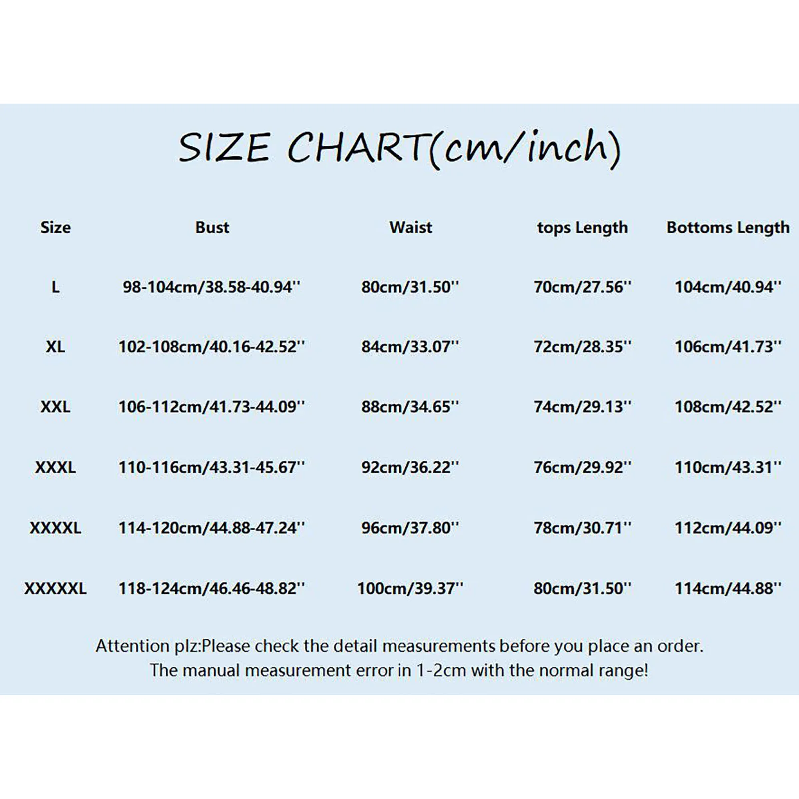 Size:XXXXXL Bust:118-124cm/46.46-48.82” Waist:100cm/39.37” tops Length:80cm/31.50” Bottoms Length:114cm/44.88”