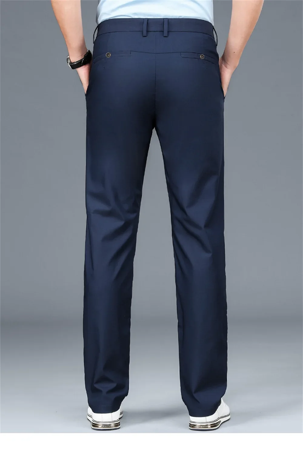 Men’s Casual Business Pants Summer Thin Straight-leg Loose-fit Trousers Middle-aged Men Ice Silk Pants