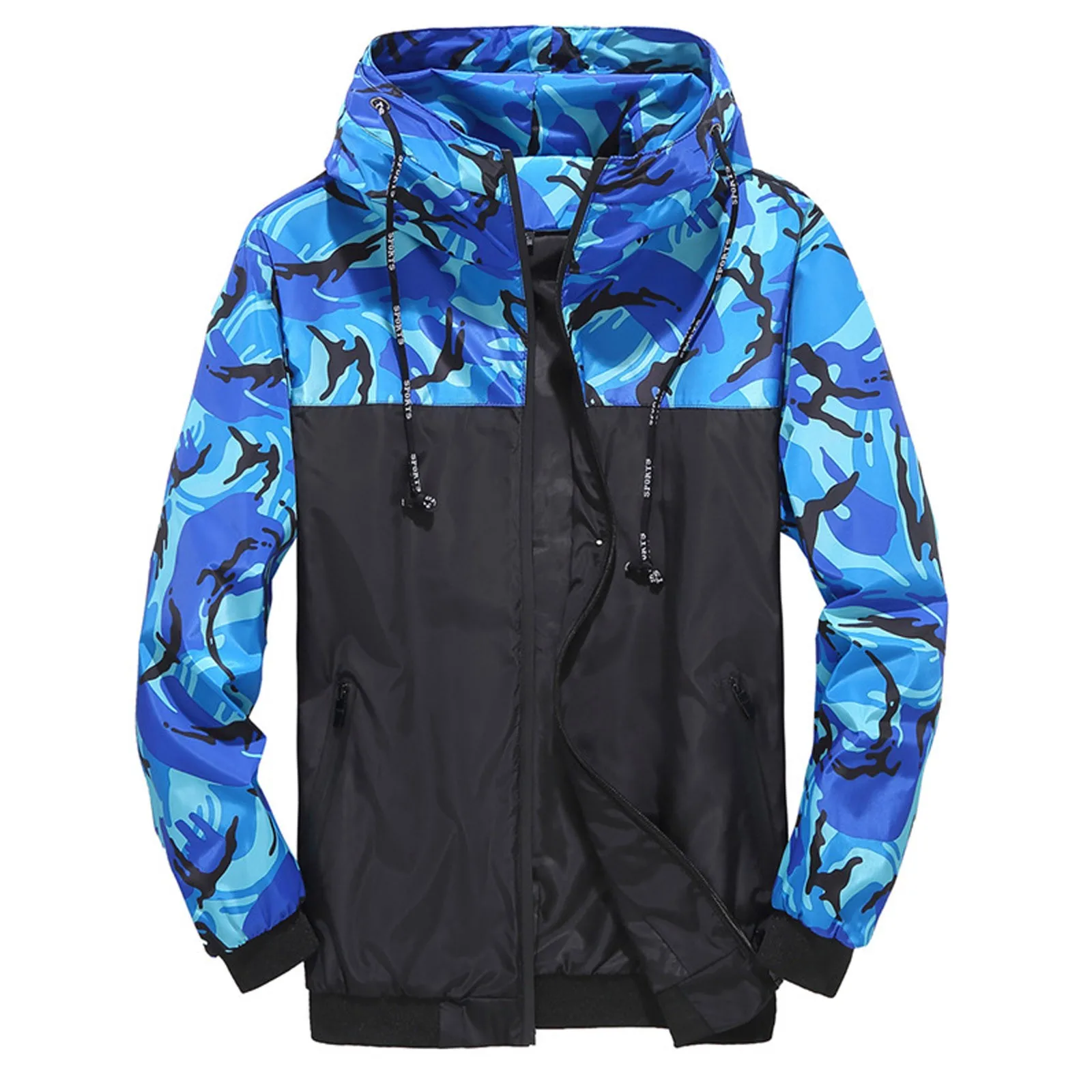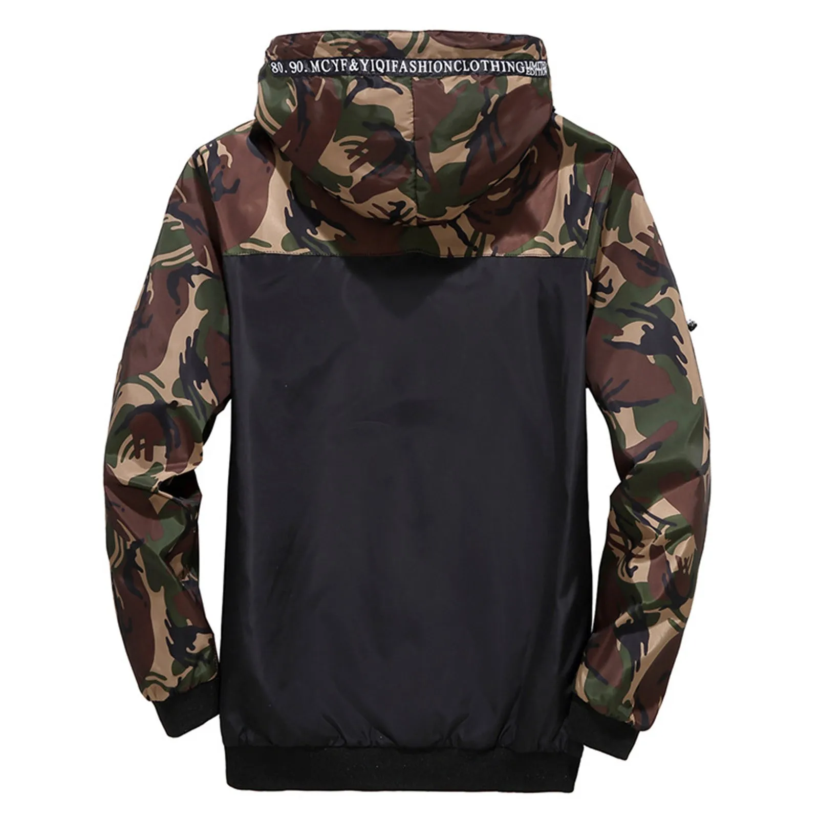 Men’s Camouflage Colorblock Hooded Jacket Men’s Zipper Cardigan Jacket
