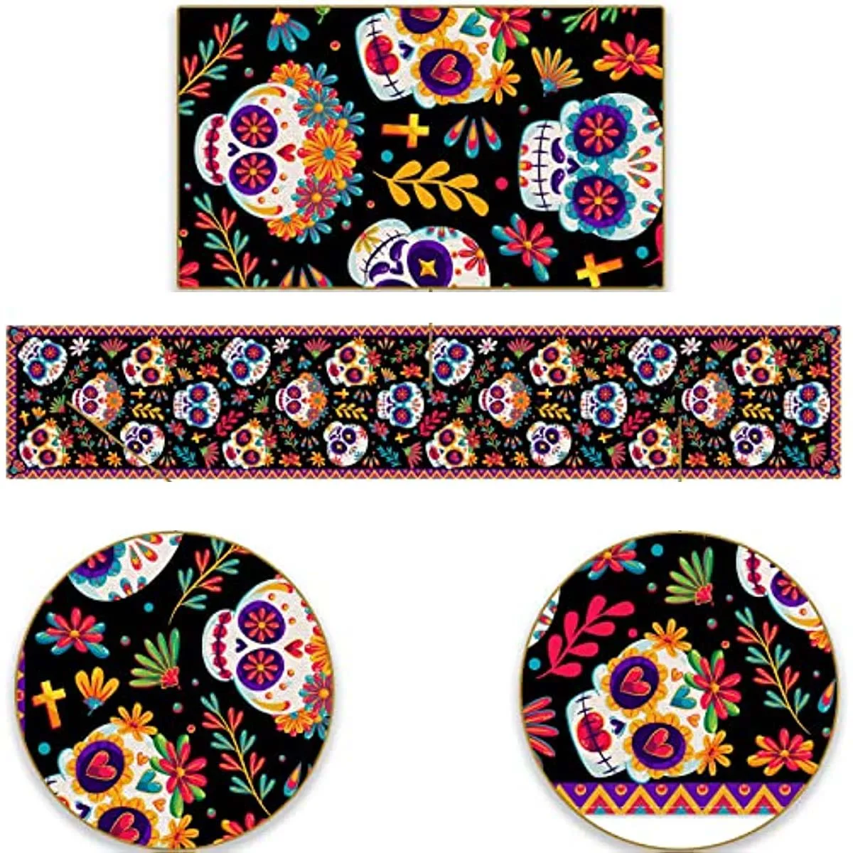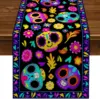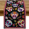 Mexican Day of The Dead Linen Table Runners Kitchen Dinning Table Decor Sugar Skull Table Runners for Dining Party Decor
