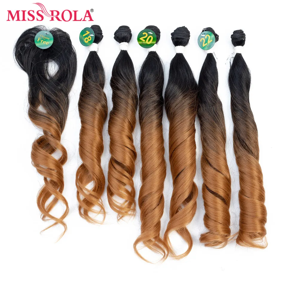 Miss Rola Synthetic Ombre Wavy Hair Bundles Hair Extensions Loose Wave Bundles T1B/27 18-22” 6pcs/Pack Hair Weaves Free Closure