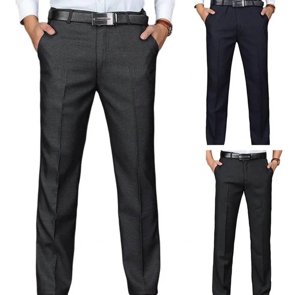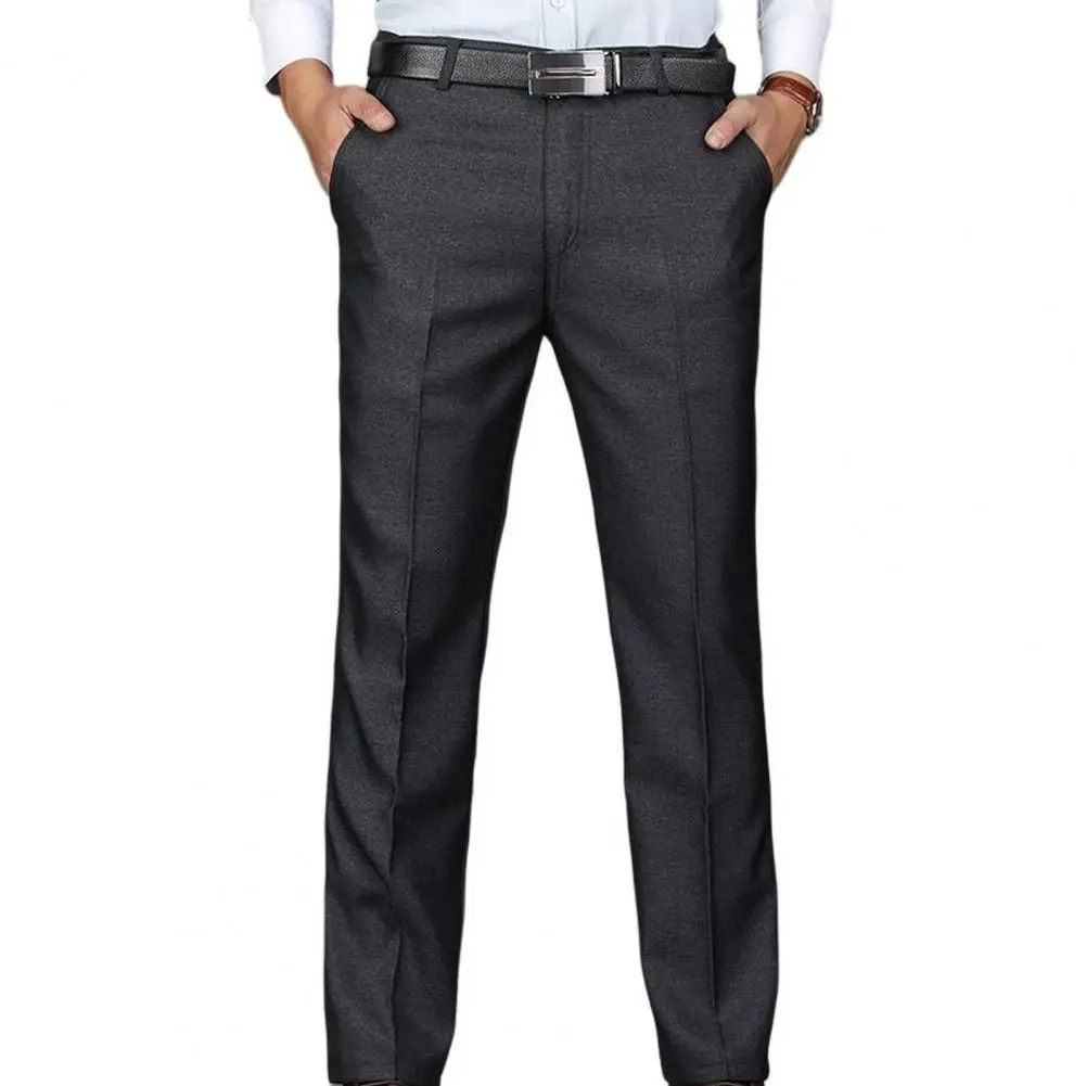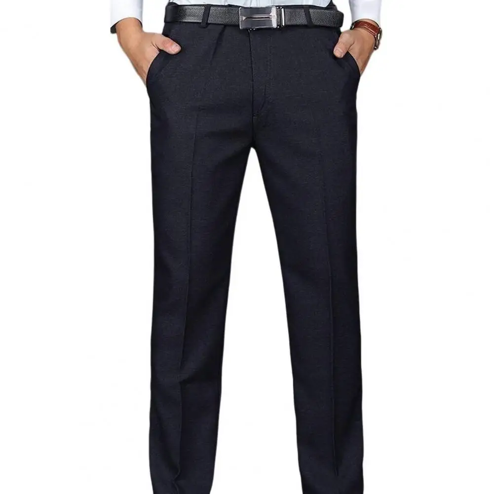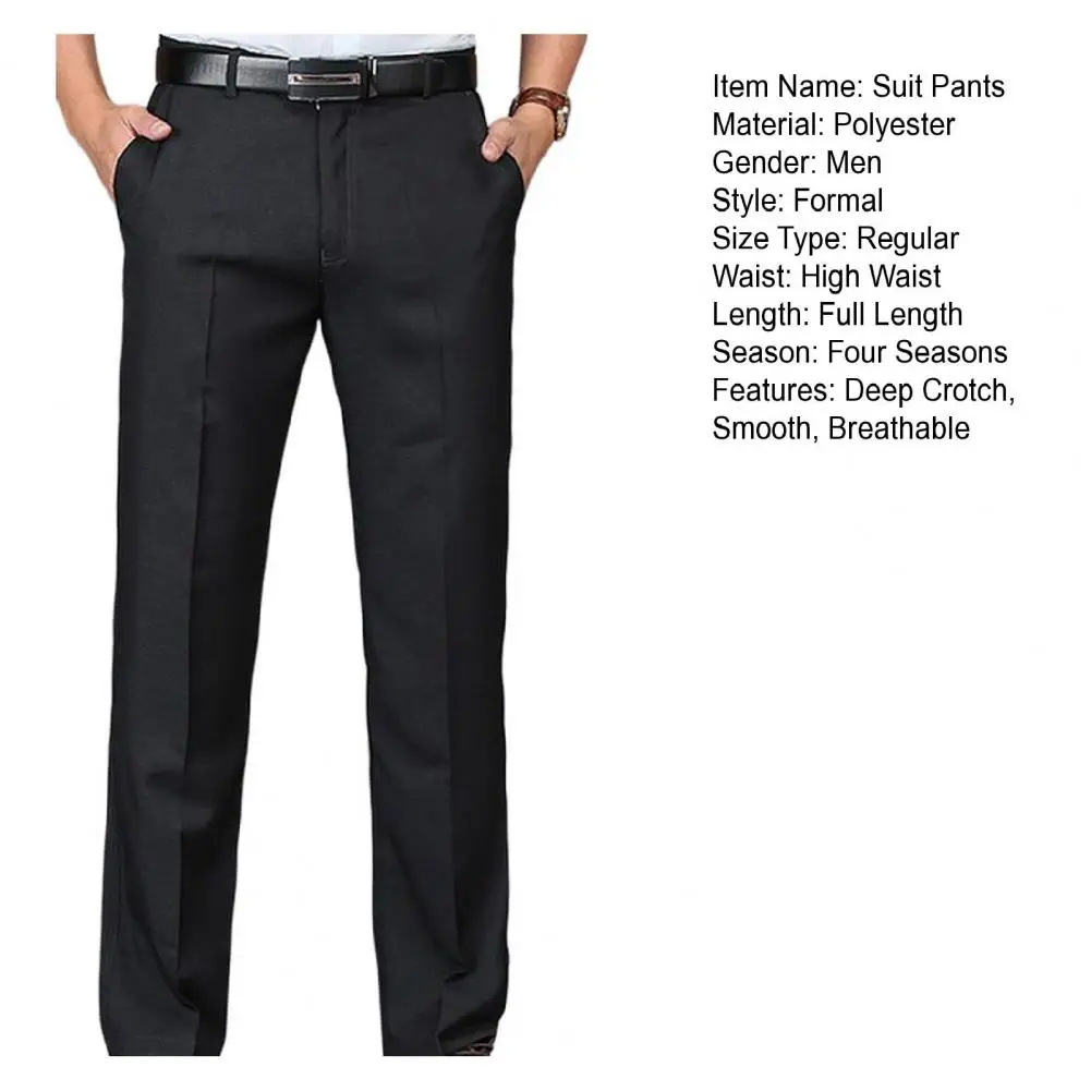 Men Suit Pants High Waist Straight Solid Color Anti-wrinkle Deep Crotch Match Shirt Pocket Business Groom Suit Pants Men Clothing