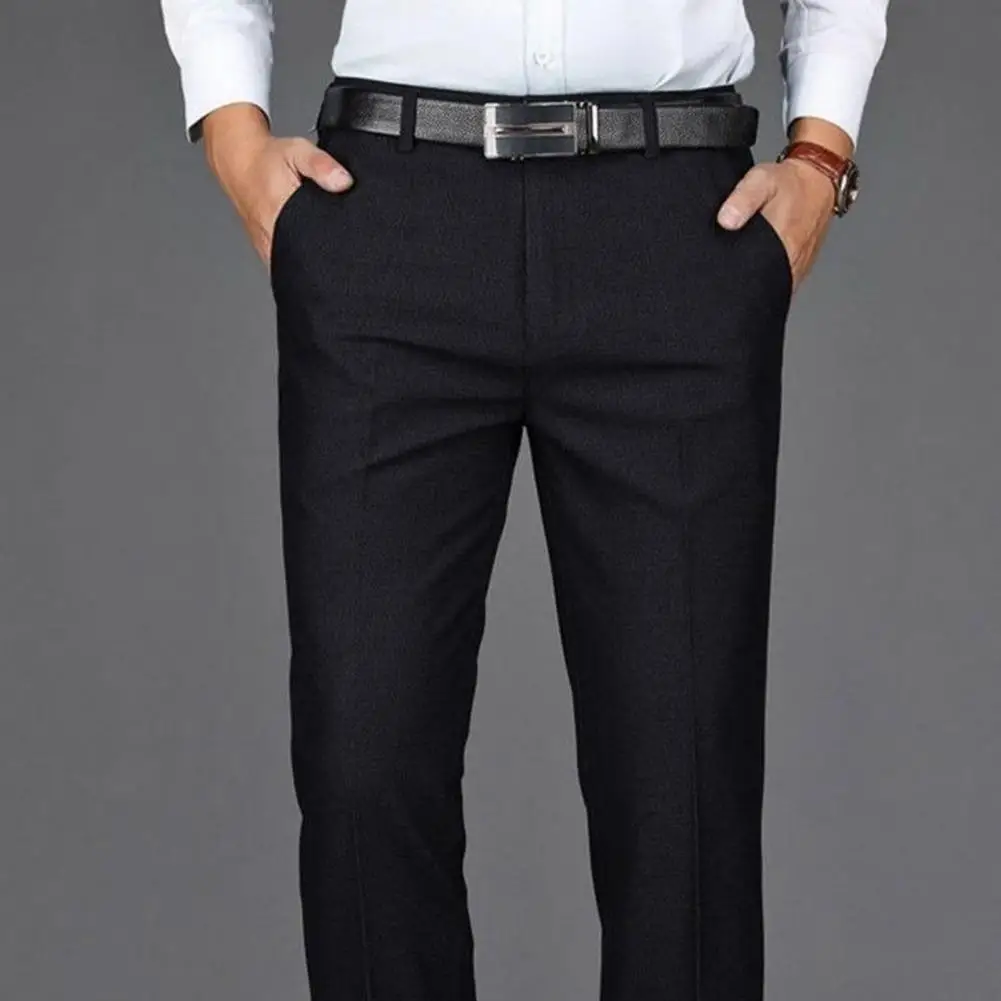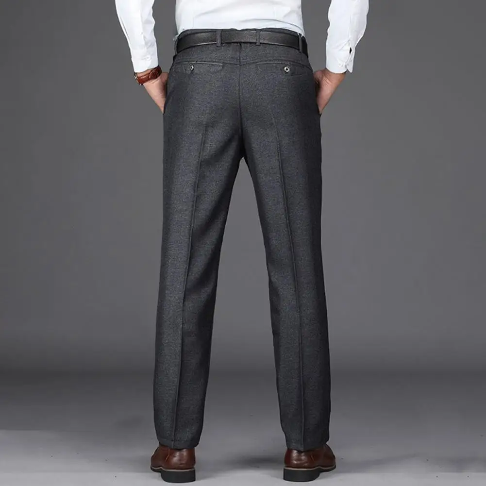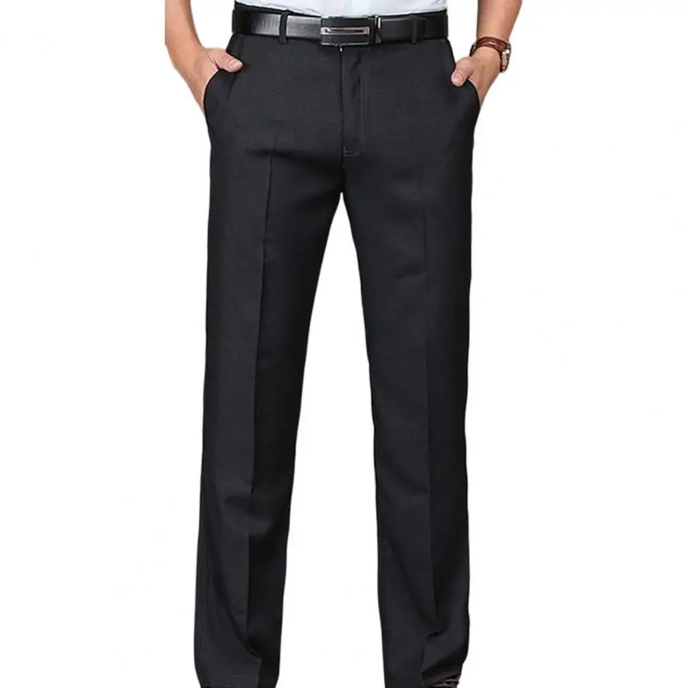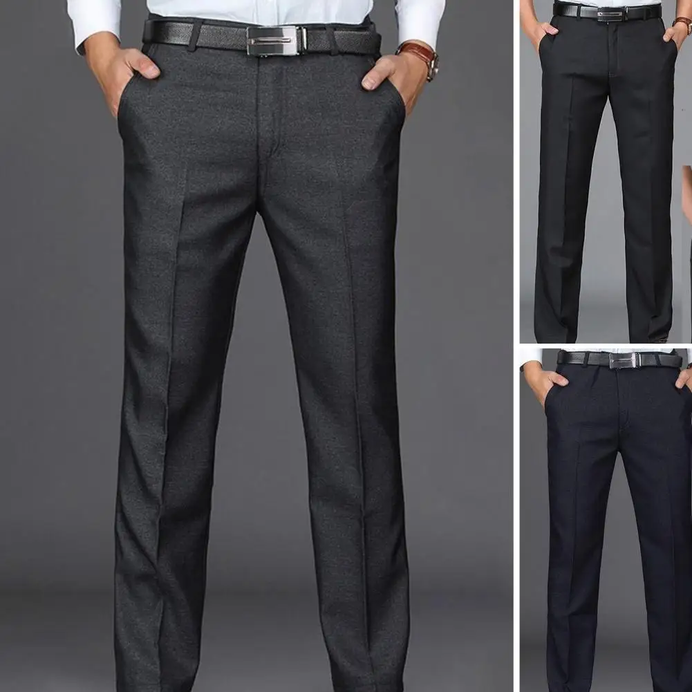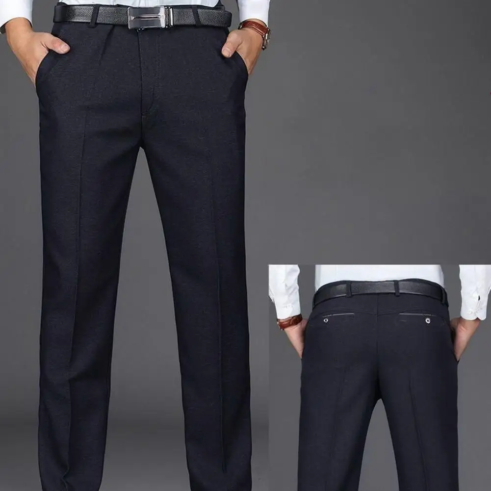Men Suit Pants High Waist Straight Solid Color Anti-wrinkle Deep Crotch Match Shirt Pocket Business Groom Suit Pants Men Clothing