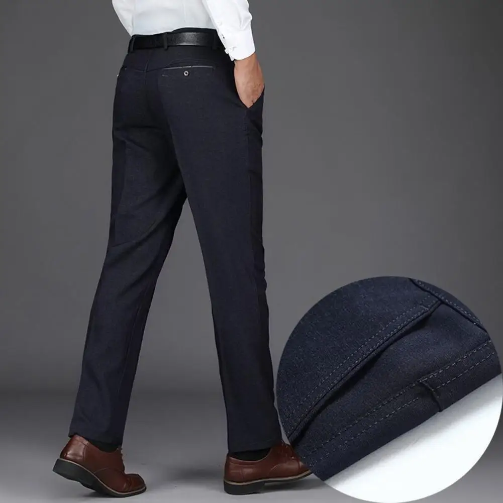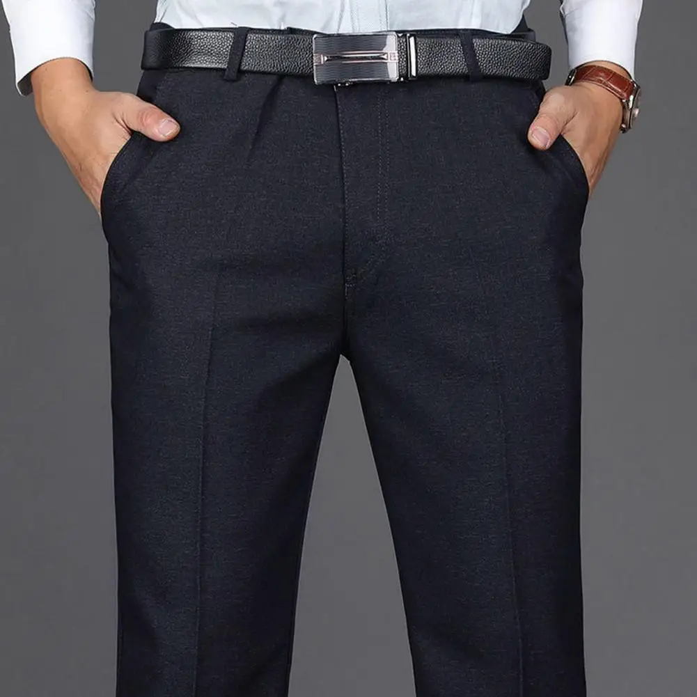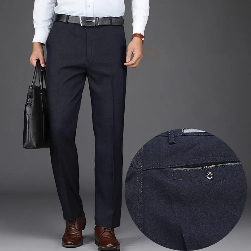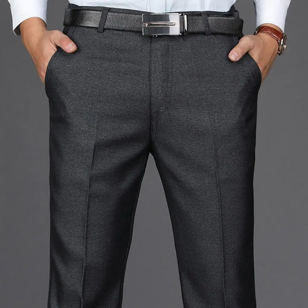 Men Suit Pants High Waist Straight Solid Color Anti-wrinkle Deep Crotch Match Shirt Pocket Business Groom Suit Pants Men Clothing