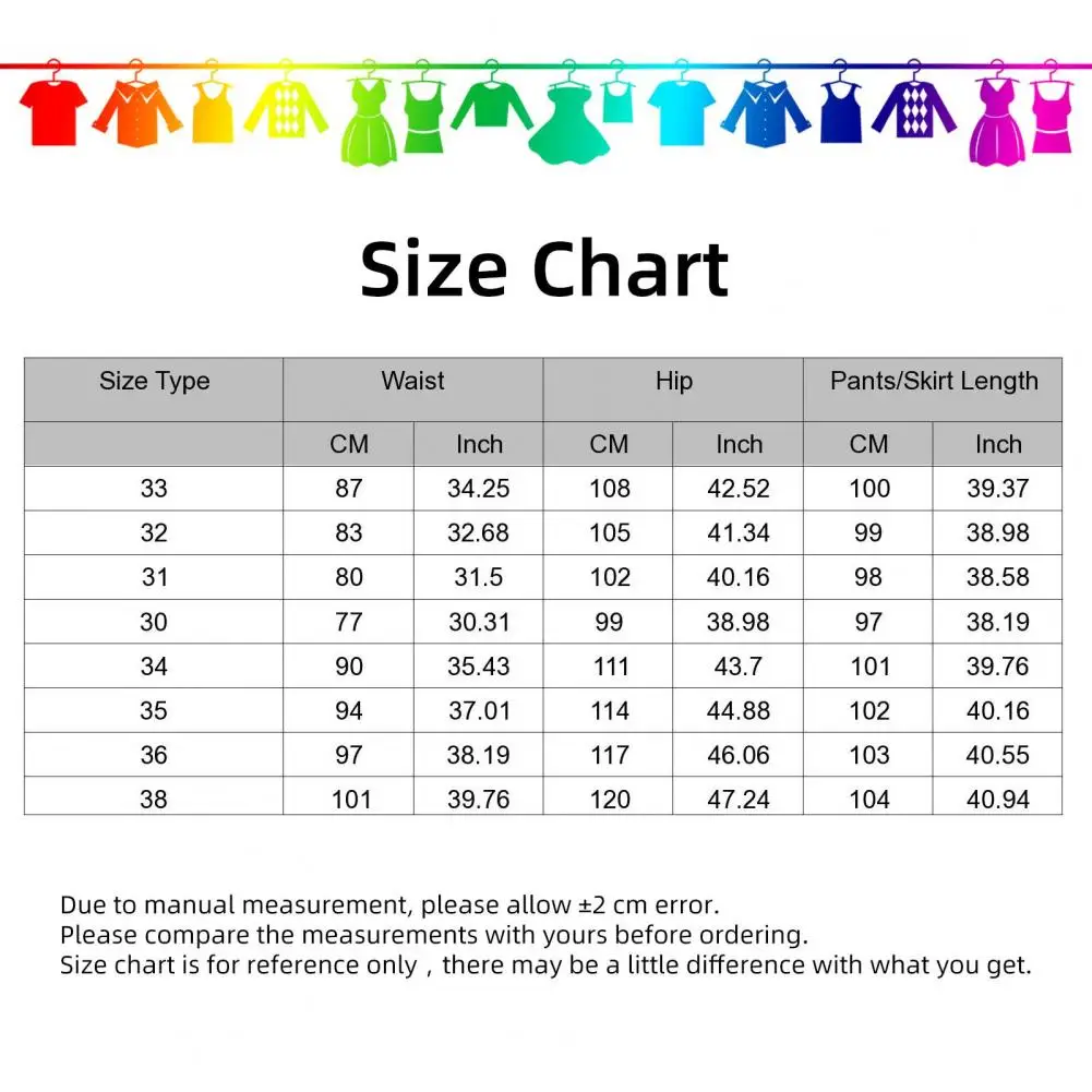 Size: 33, Waist: 87cm/34.25″, Hip: 108cm/42.52″, Pants Length: 100cm/39.37″(Approx.)