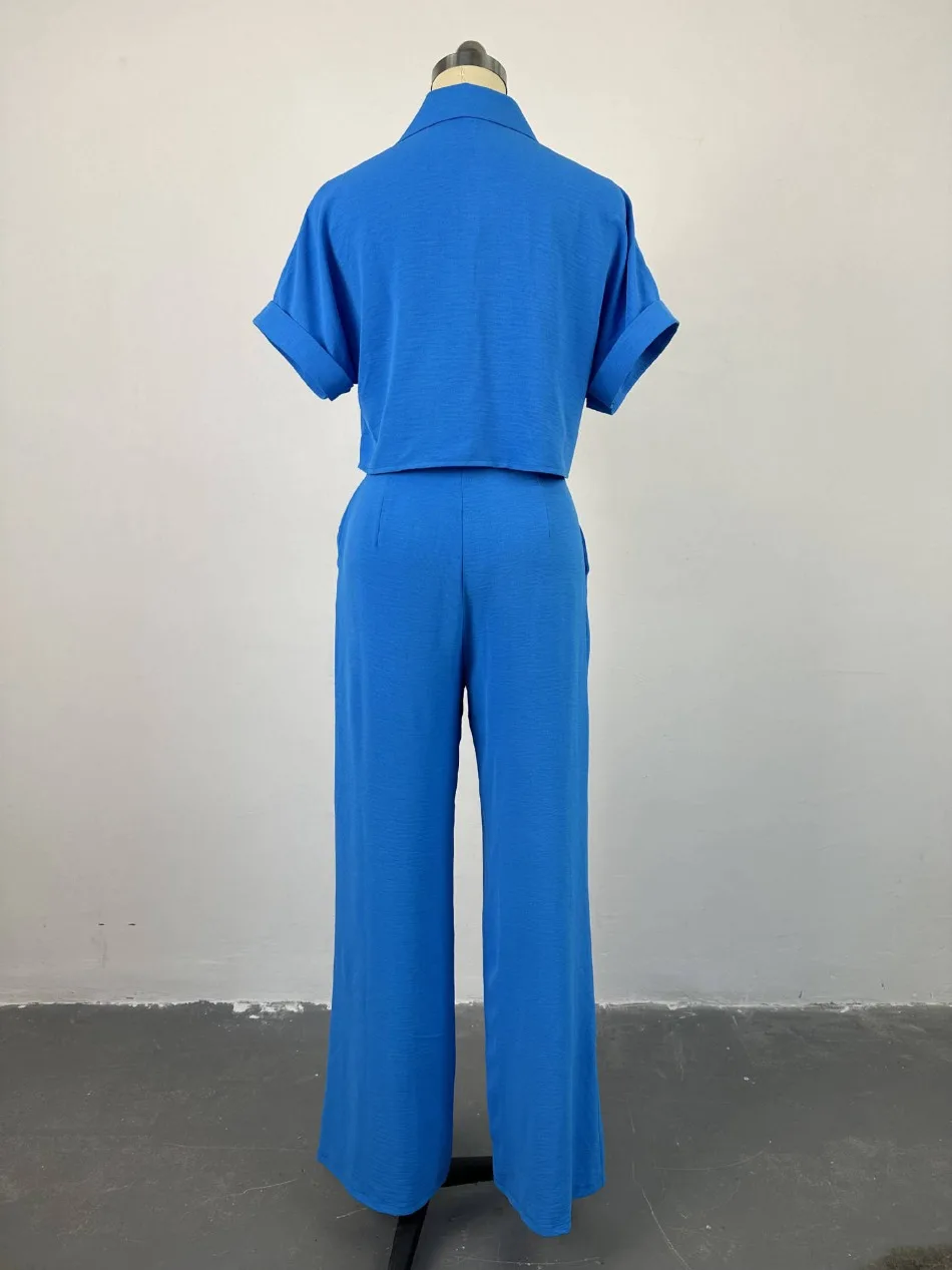 New Summer Women Pant Set Lapel Short Sleeved Shirt Wide Leg Trousers 2-piece Set Leisure Suit Fashion Casual Women’s Clothing