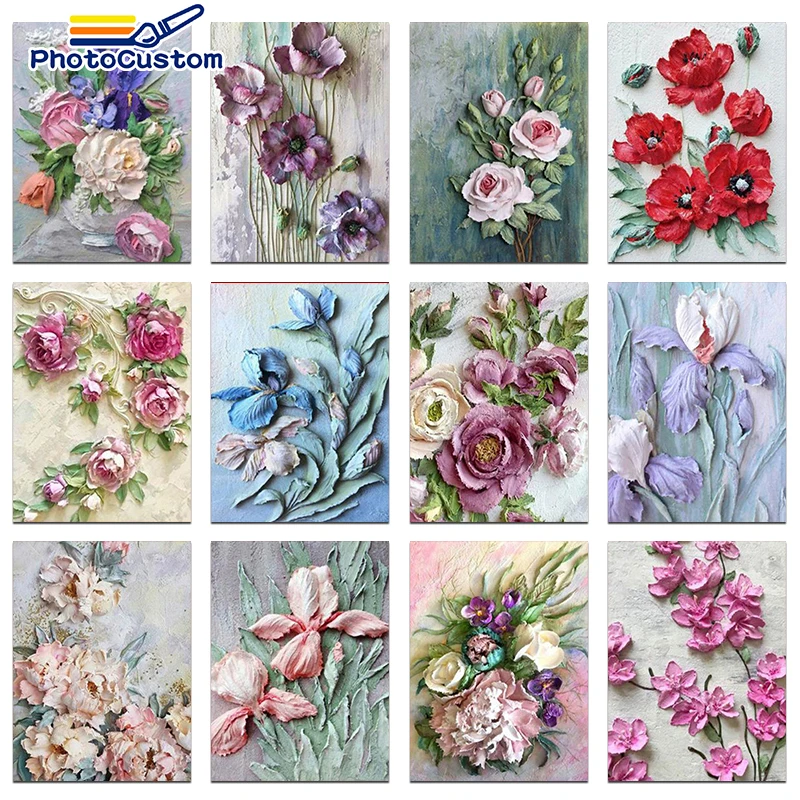 PhotoCustom Painting By Numbers Flowers Landscape DIY Oil Paint Acrylic On Canvas Adult Kit Home Decoration Art Coloring Picture