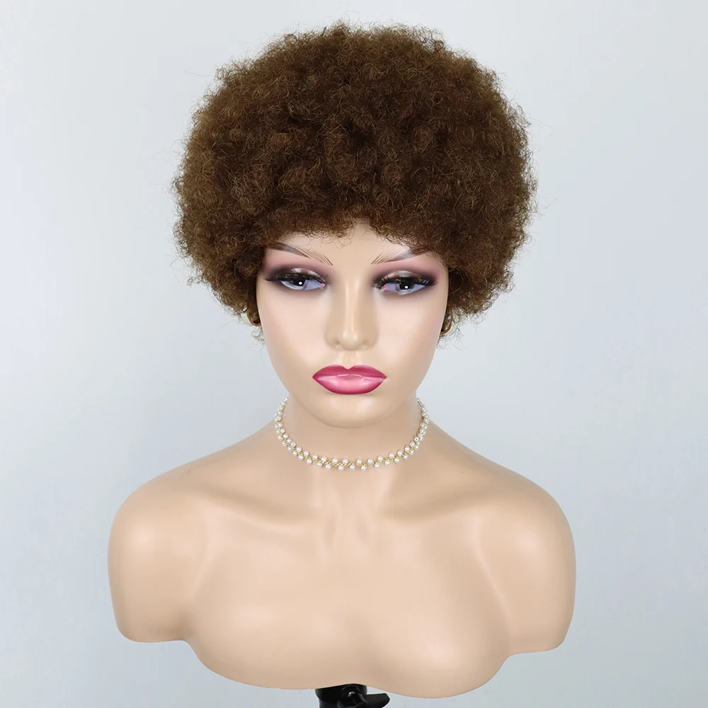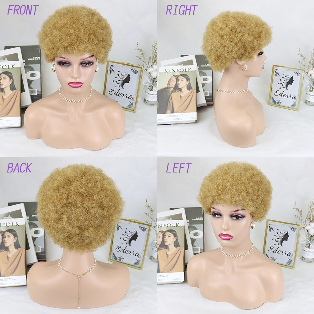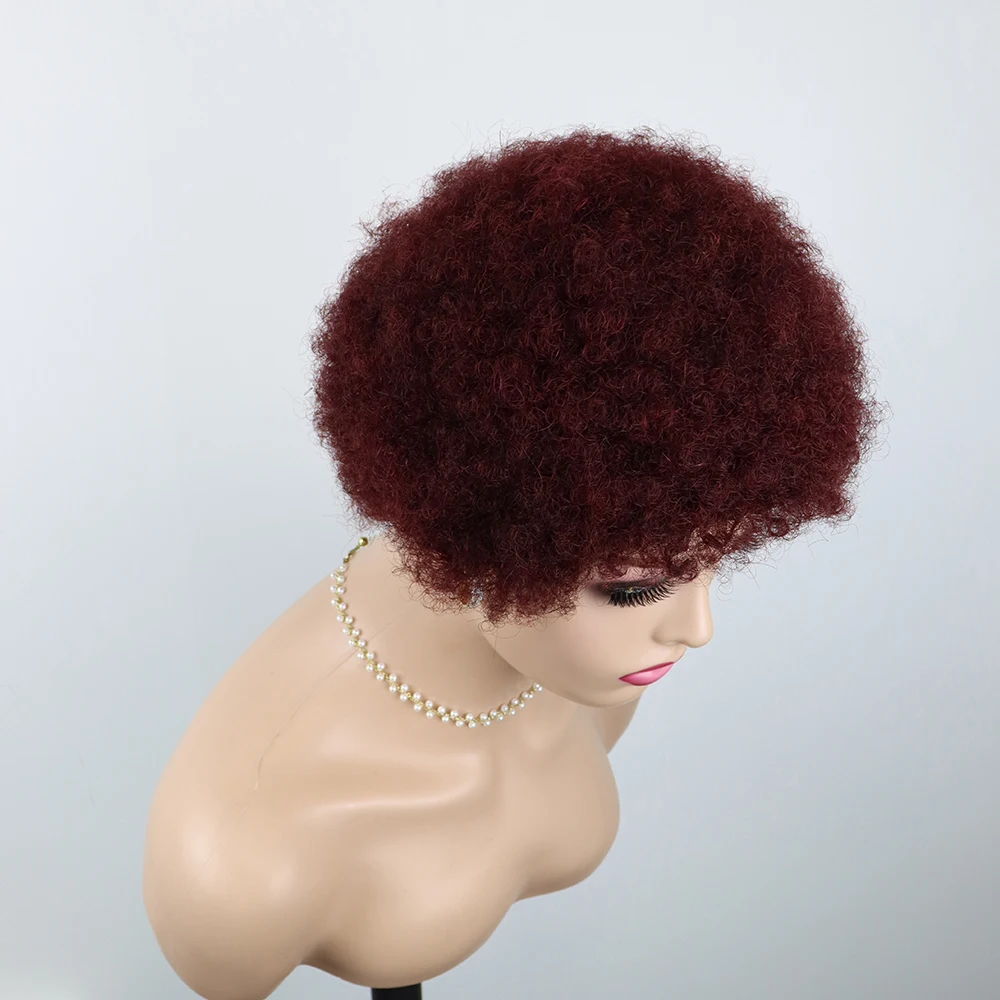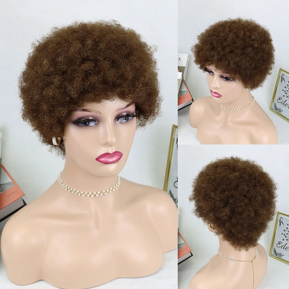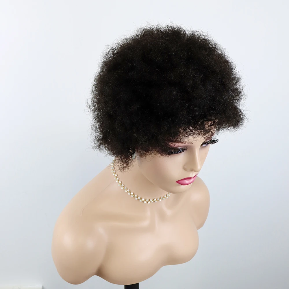 Short Afro Kinky Curly Hair Wigs For Black Women African Fluffy With Bangs Human Hair Wigs Pixie Cut Brazilian Remy Glueless