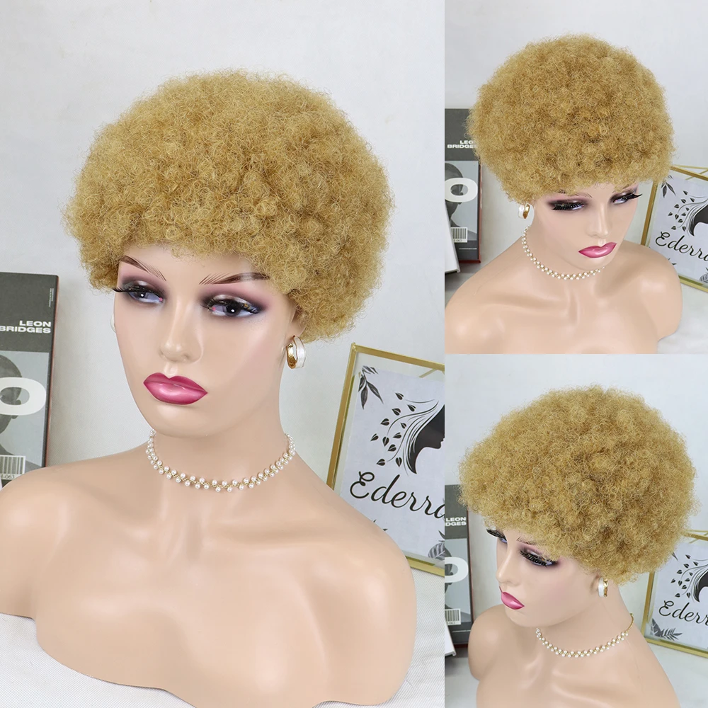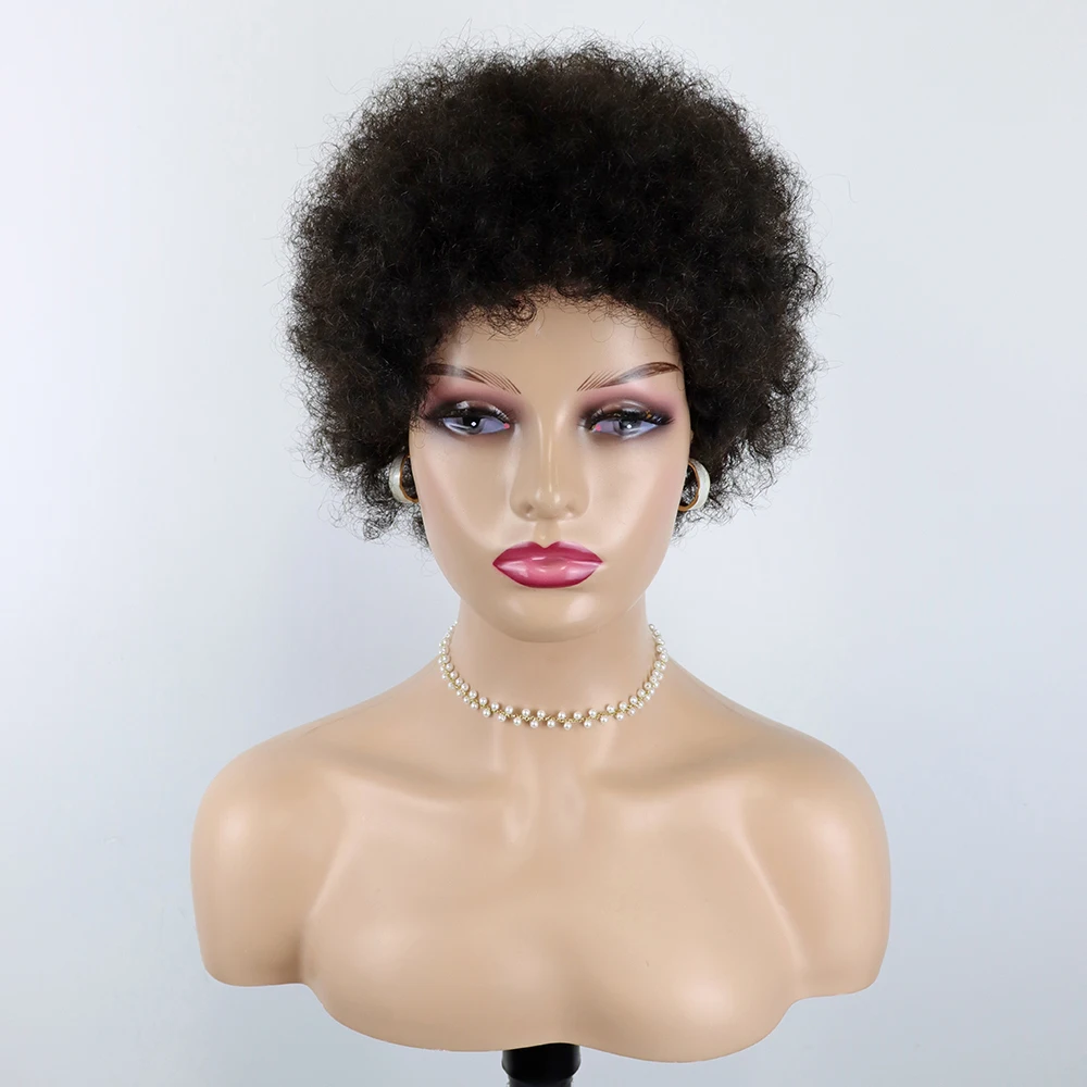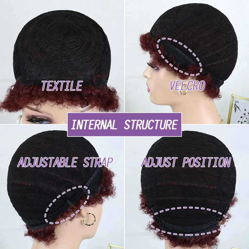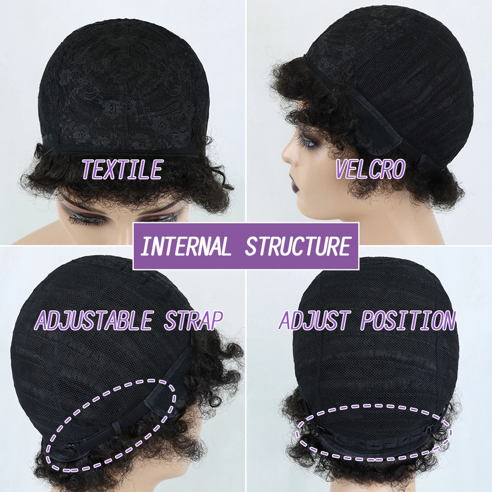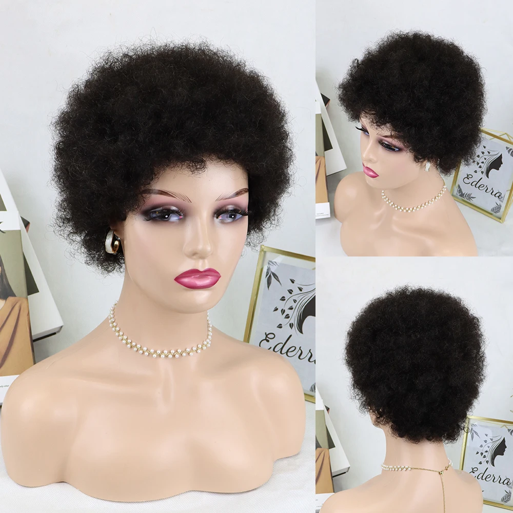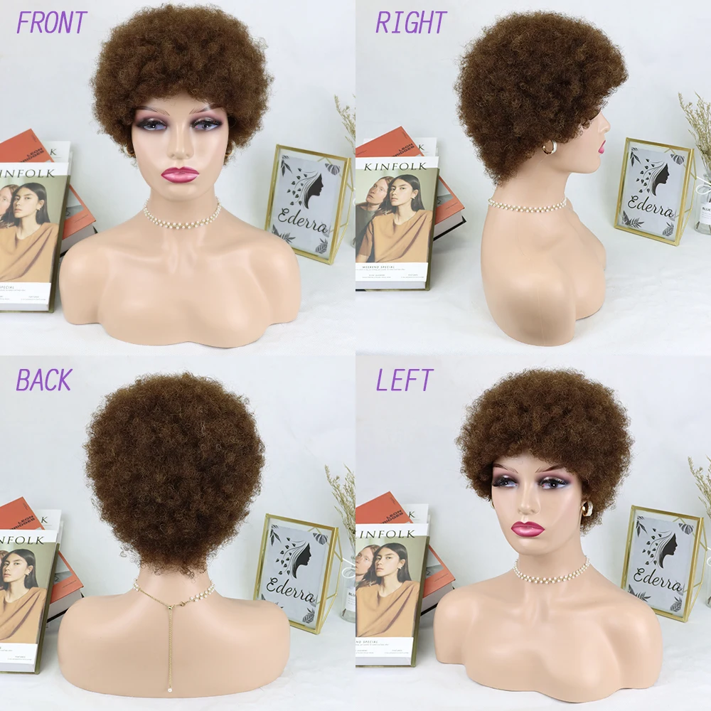 Short Afro Kinky Curly Hair Wigs For Black Women African Fluffy With Bangs Human Hair Wigs Pixie Cut Brazilian Remy Glueless