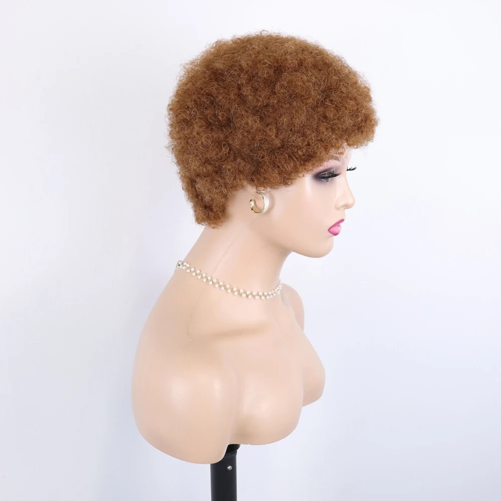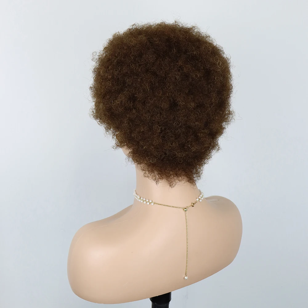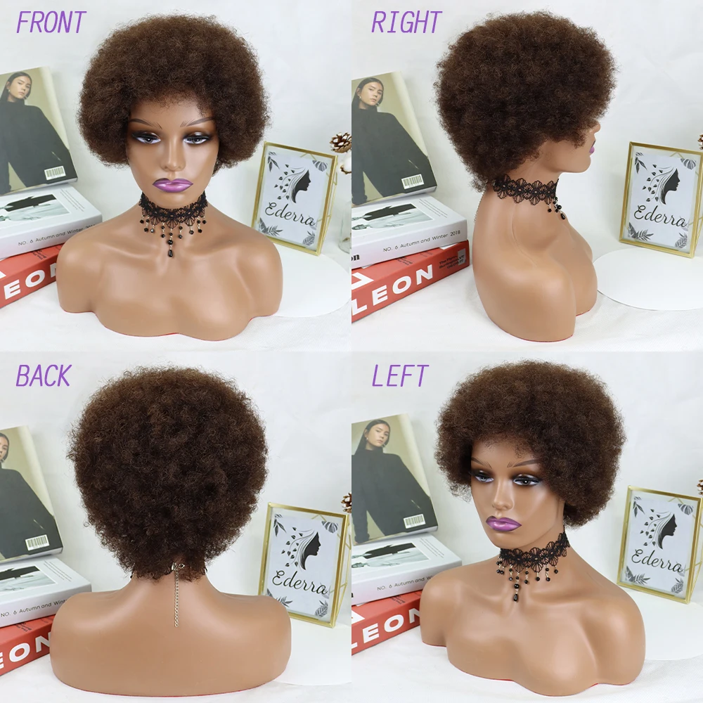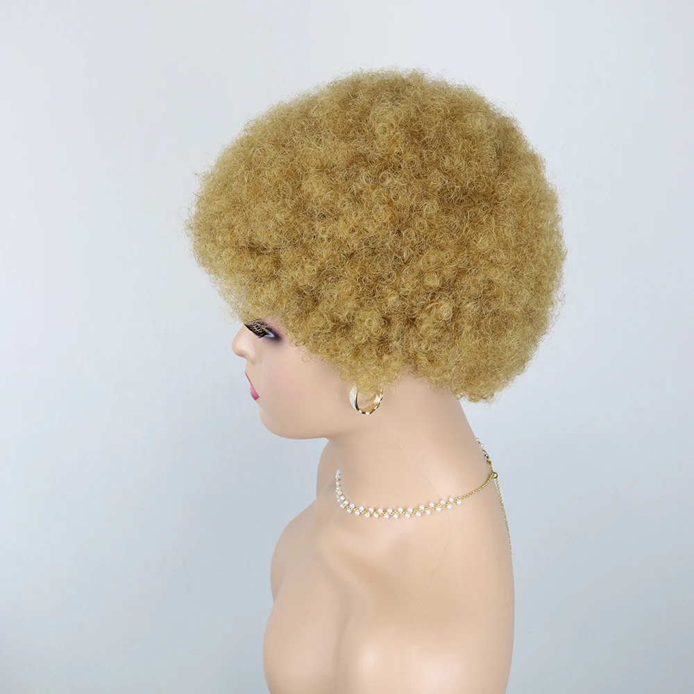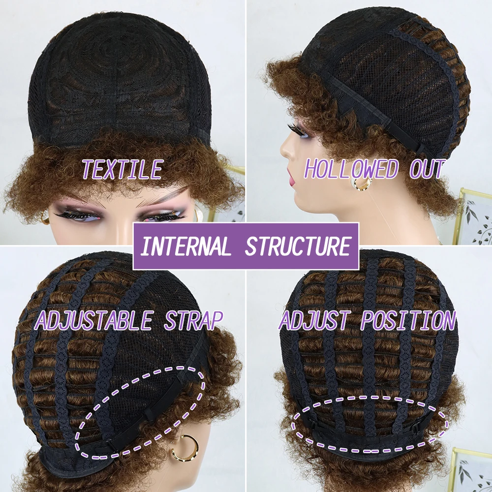 Short Afro Kinky Curly Hair Wigs For Black Women African Fluffy With Bangs Human Hair Wigs Pixie Cut Brazilian Remy Glueless