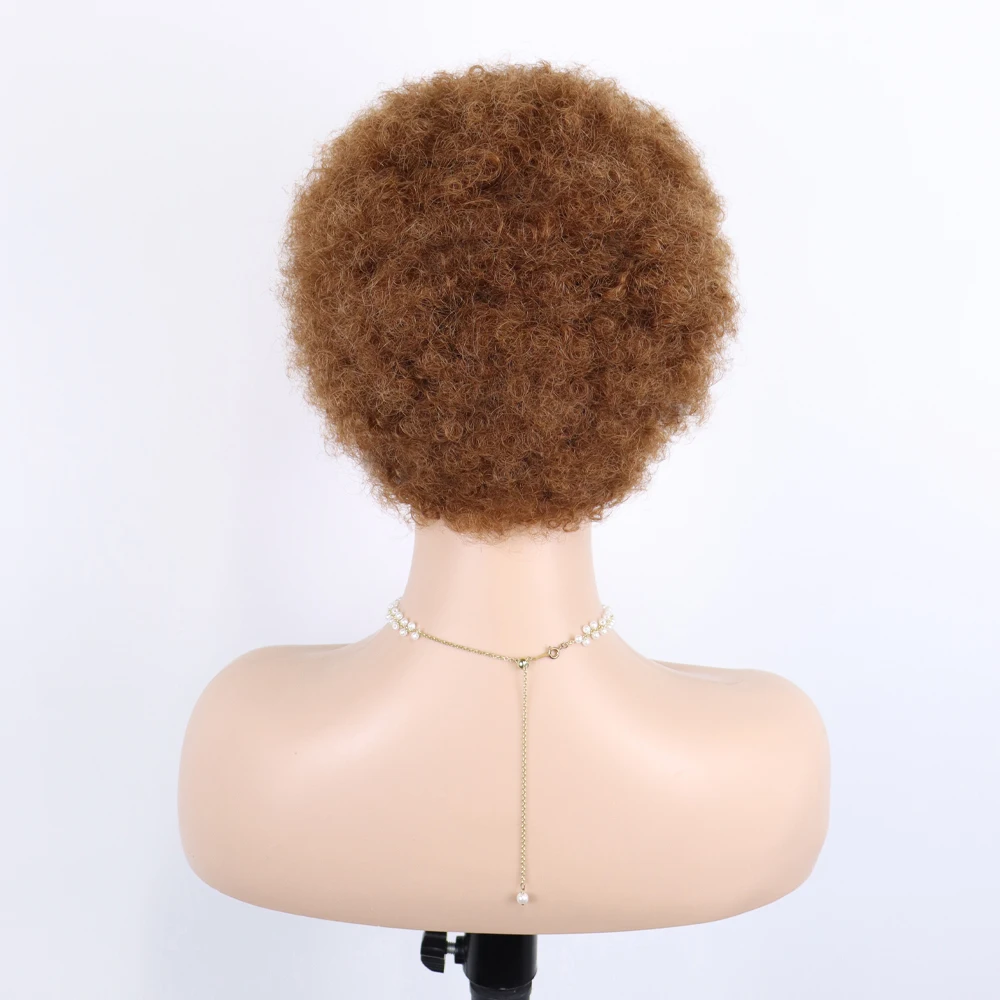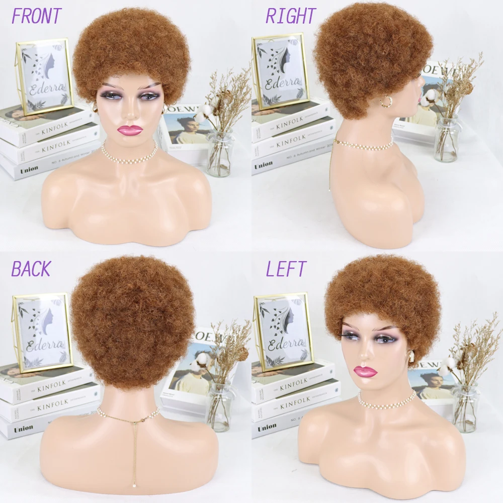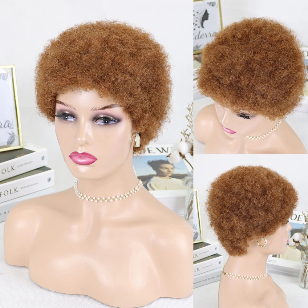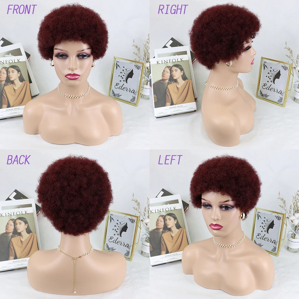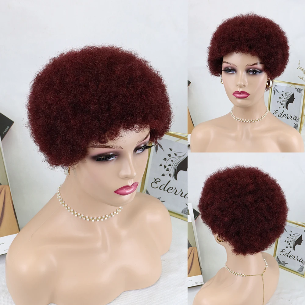 Short Afro Kinky Curly Hair Wigs For Black Women African Fluffy With Bangs Human Hair Wigs Pixie Cut Brazilian Remy Glueless