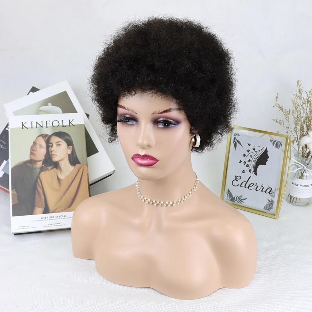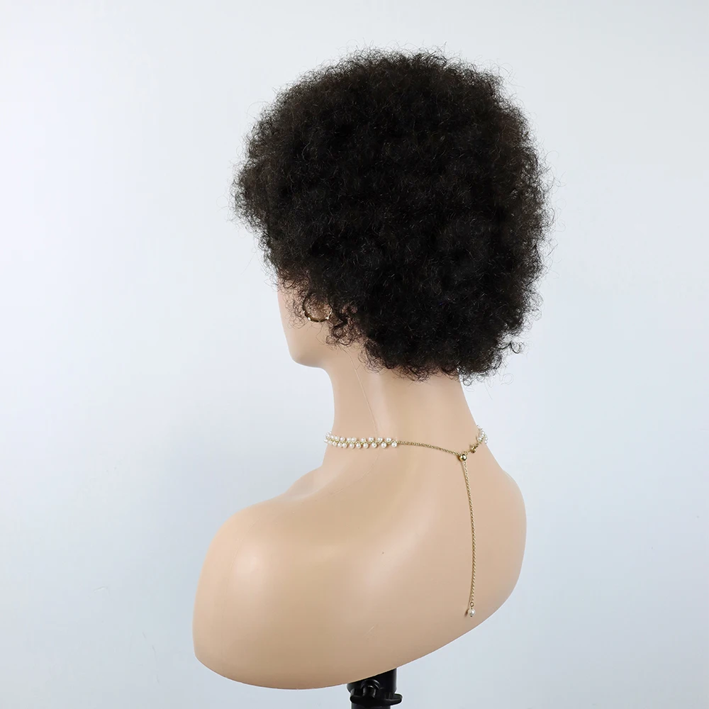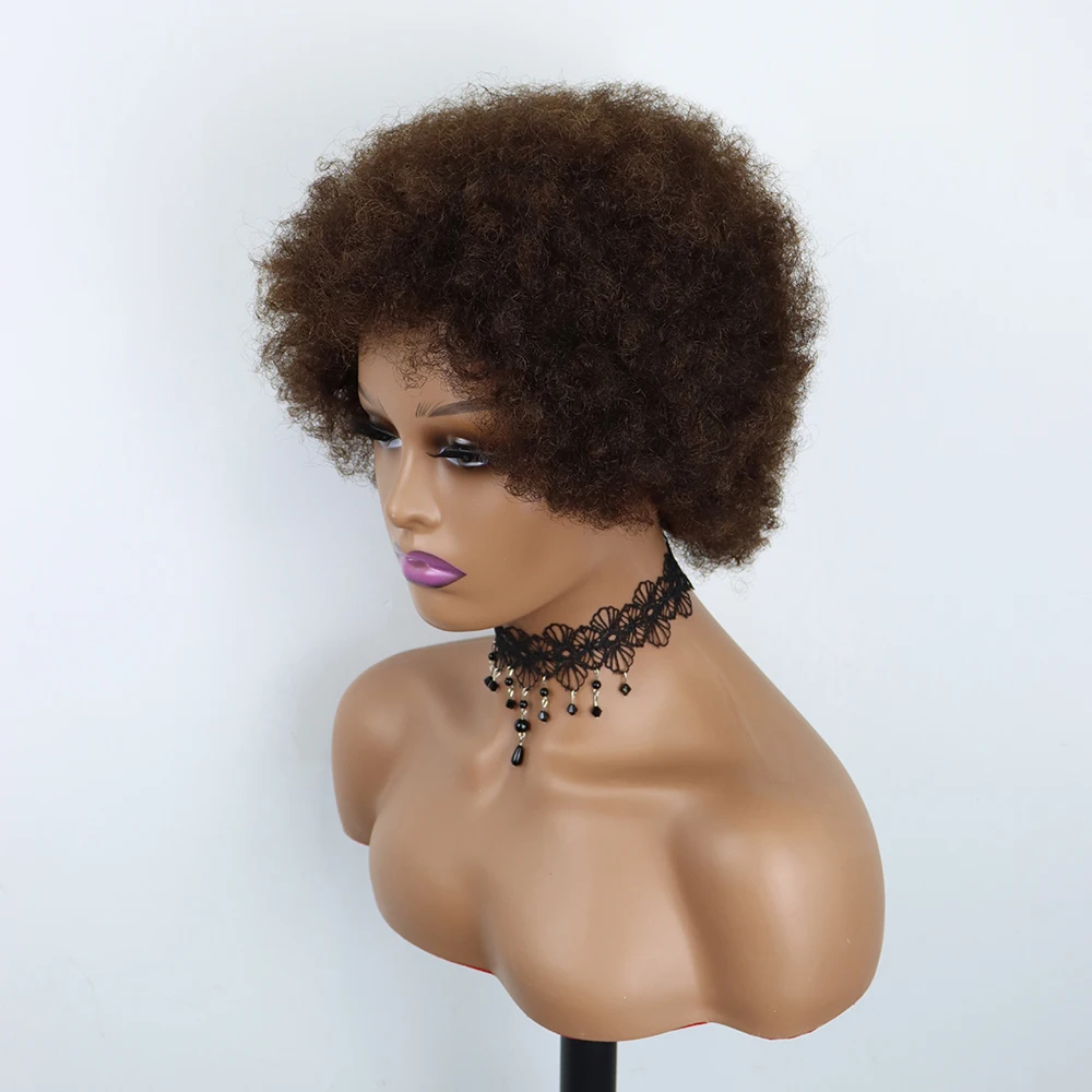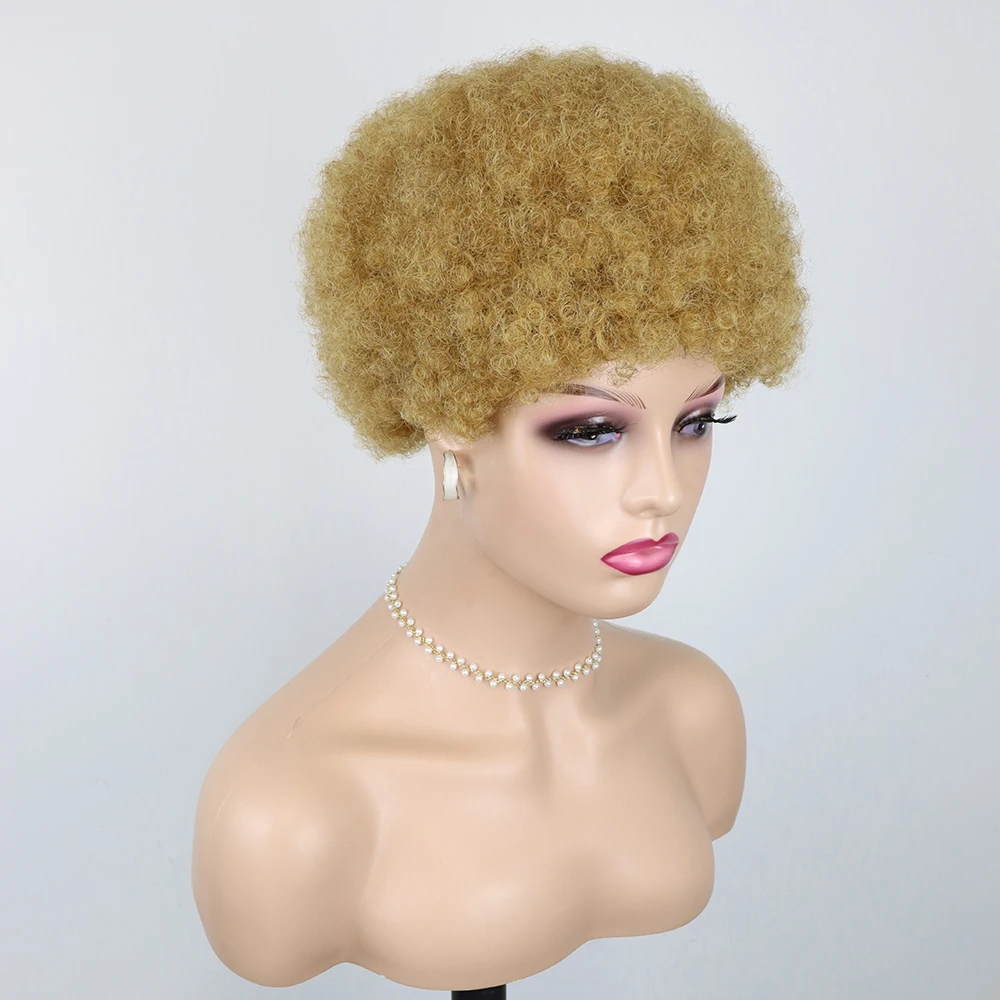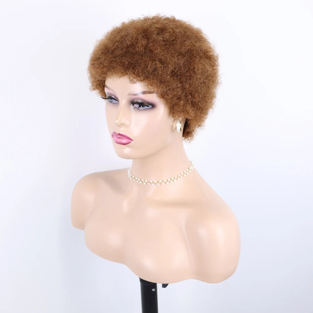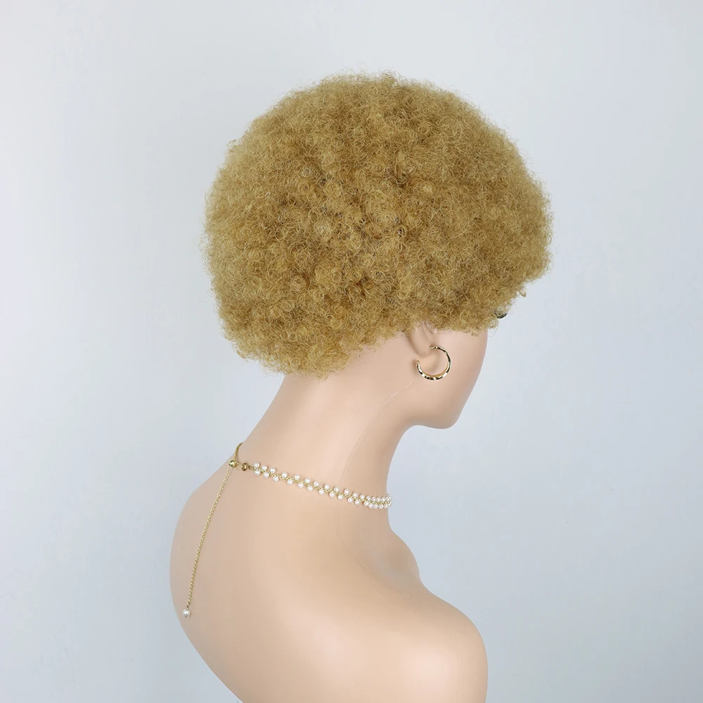 Short Afro Kinky Curly Hair Wigs For Black Women African Fluffy With Bangs Human Hair Wigs Pixie Cut Brazilian Remy Glueless
