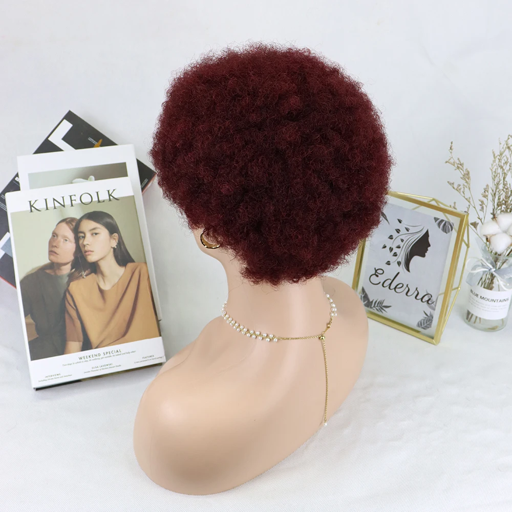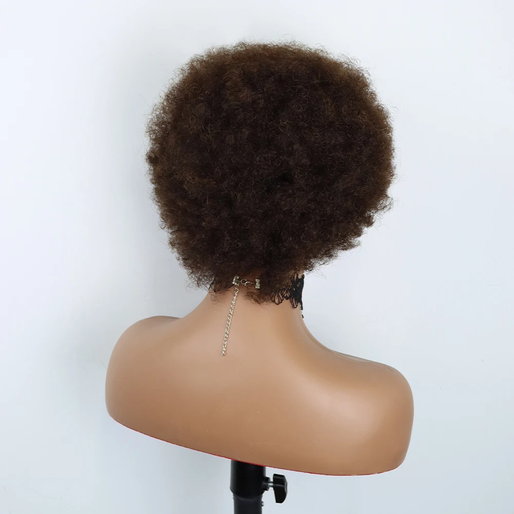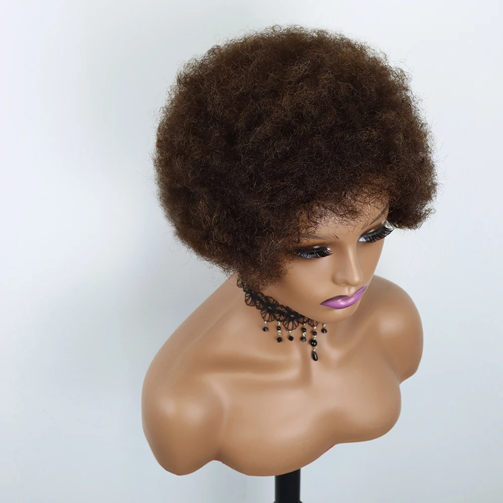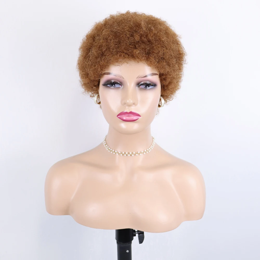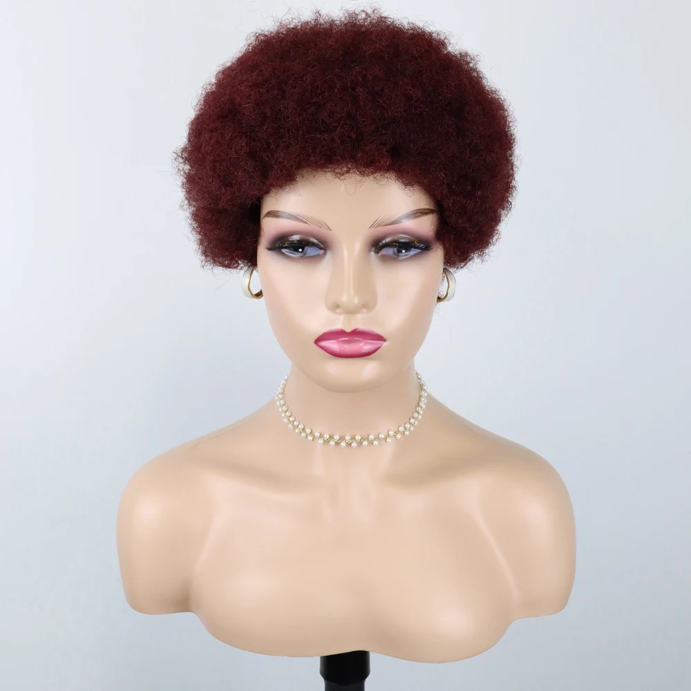 Short Afro Kinky Curly Hair Wigs For Black Women African Fluffy With Bangs Human Hair Wigs Pixie Cut Brazilian Remy Glueless