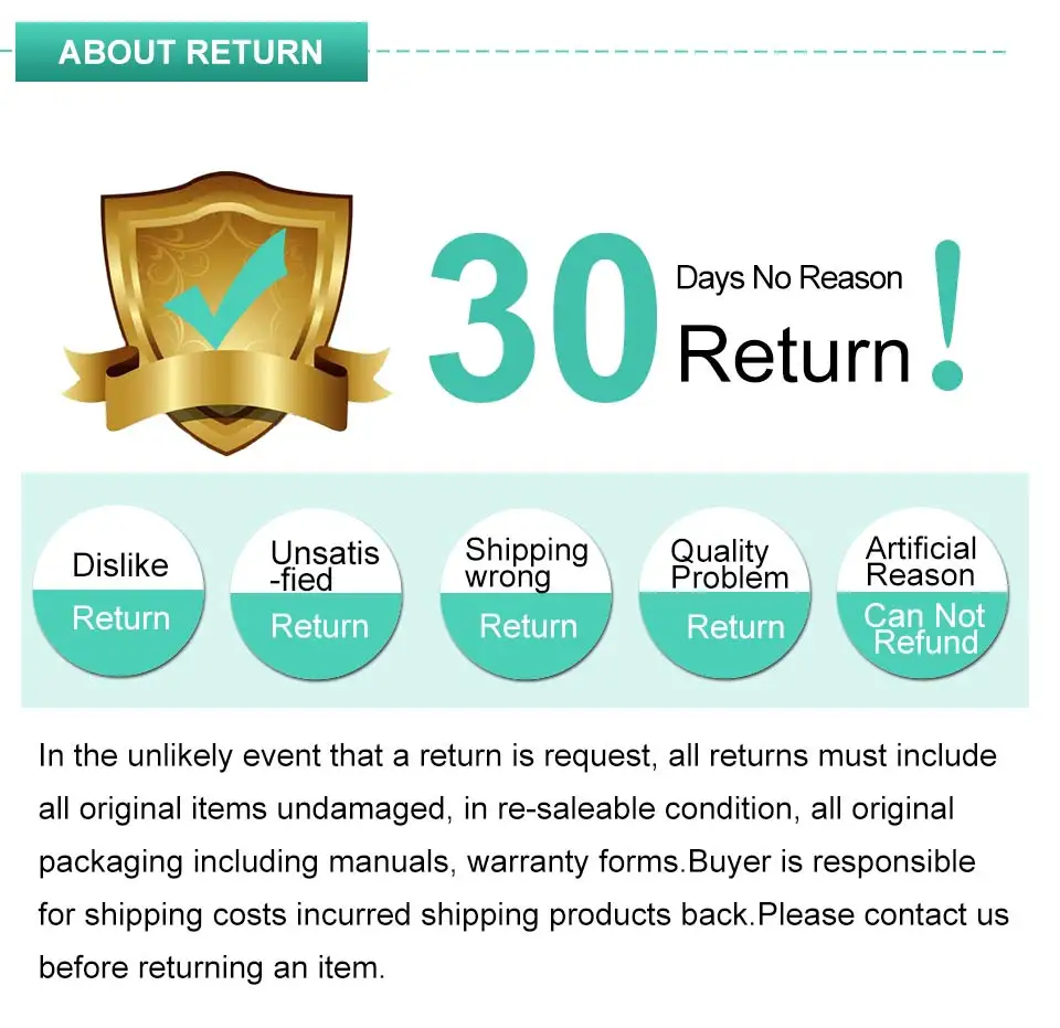 Arrange your return for a full refund, we've got you covered with our full Buyer protection