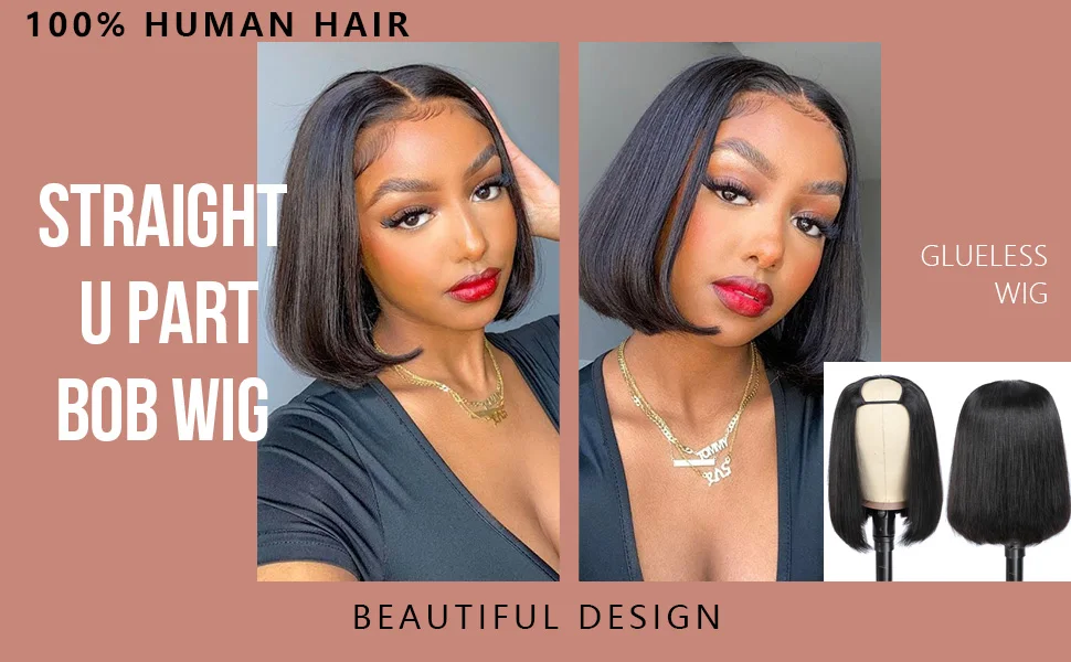 Straight short Bob U Part Human Hair Wigs For Women U Shape Brazilian Human Hair Glueless Wig No Leave Out Glueless Wig
