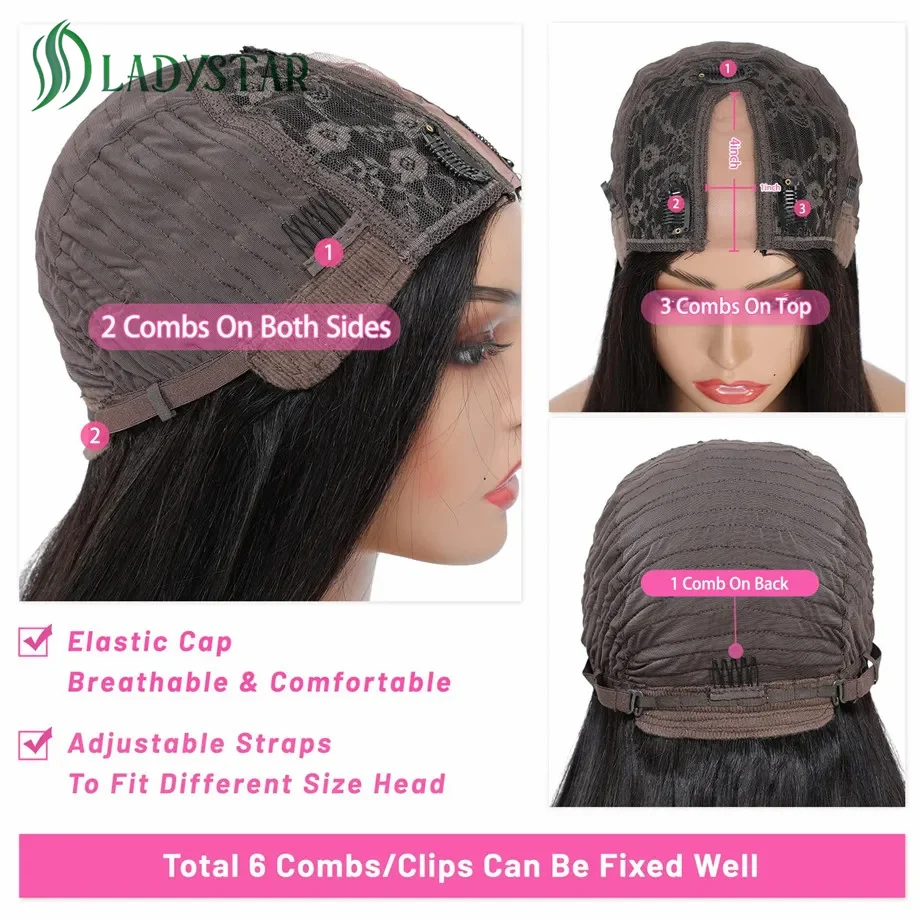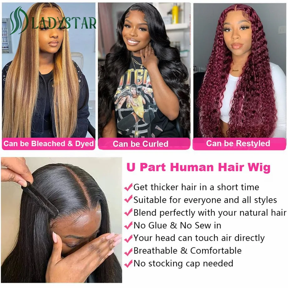 Straight U Part Wigs For Women Human Hair Brazilian Straight Human Hair Wigs 150% Density U Shape Human Hair Wigs