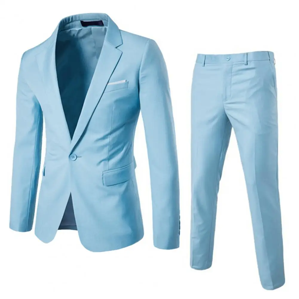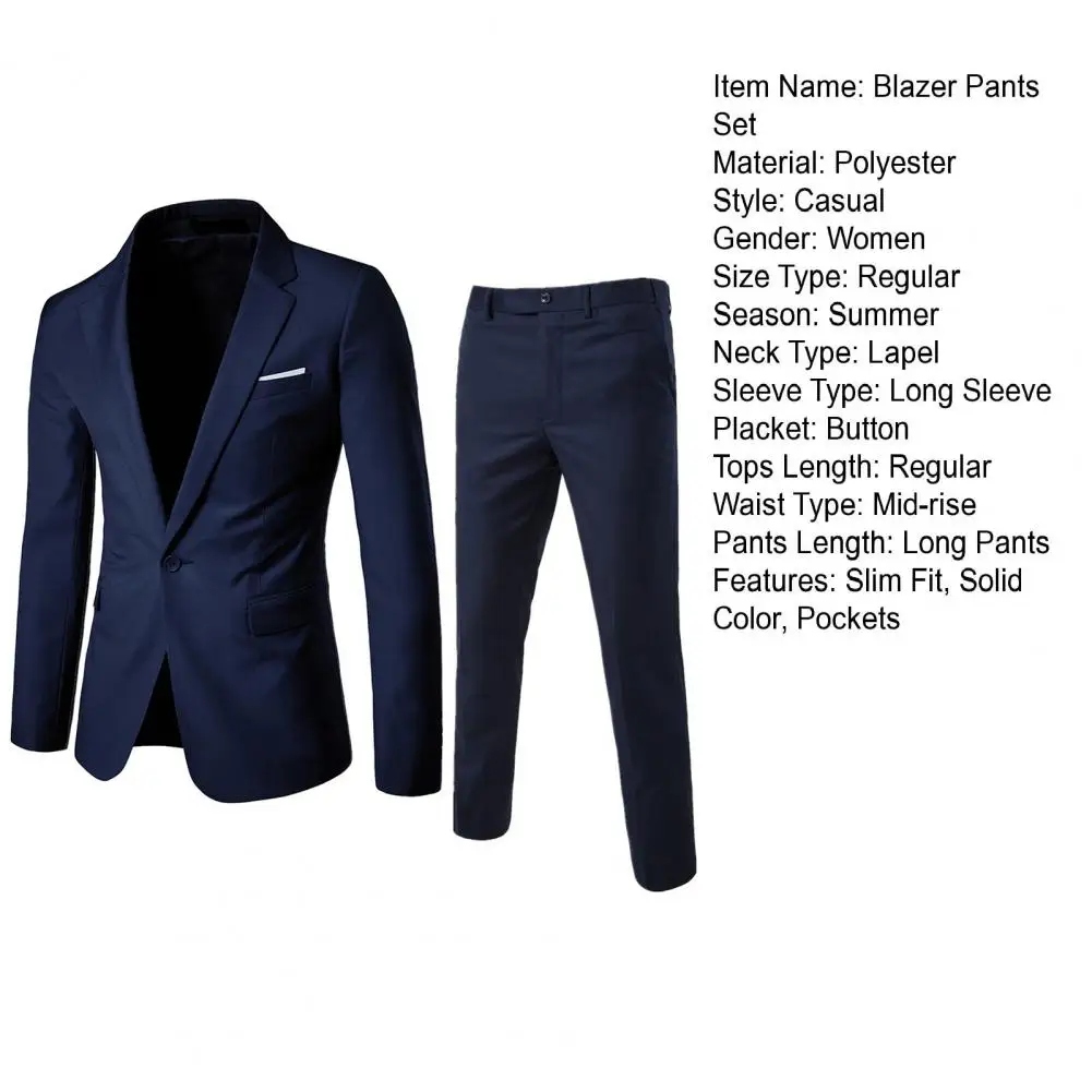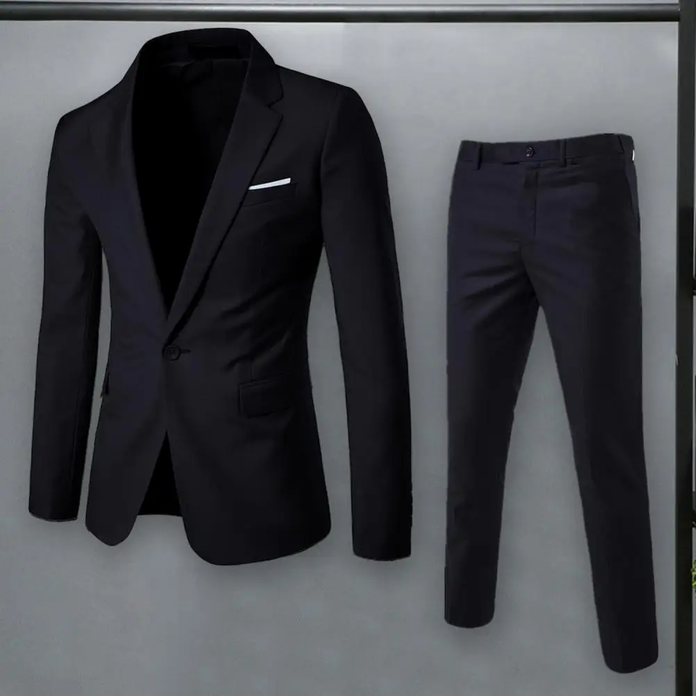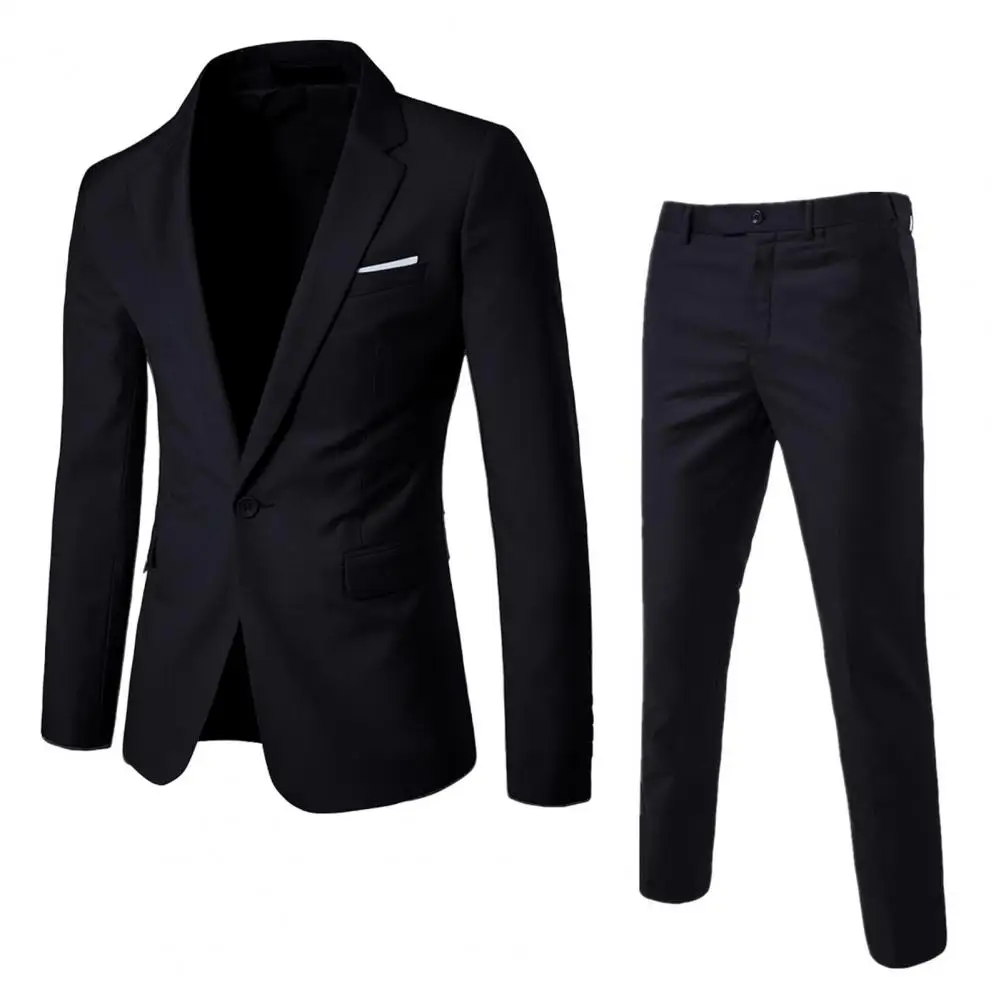Suit Jacket Pants Set Stylish Men’s Business Suit Set Lapel Single Button Coat Slim Fit Pants with Pockets Workwear for A