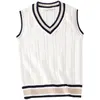 Sweater Vest Men Thicken V-neck Sleeveless Knitted Sweaters Vests Striped Retro Preppy-style Simple Chic Loose Casual All-match