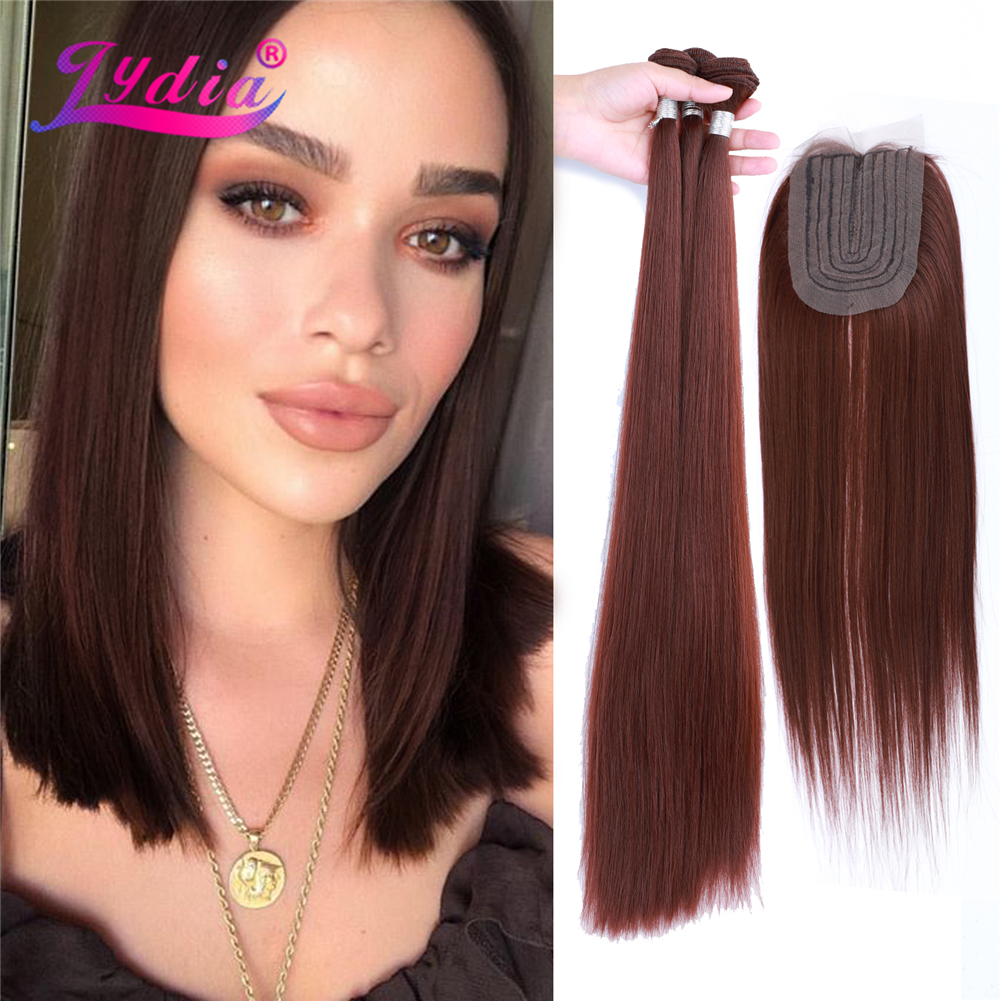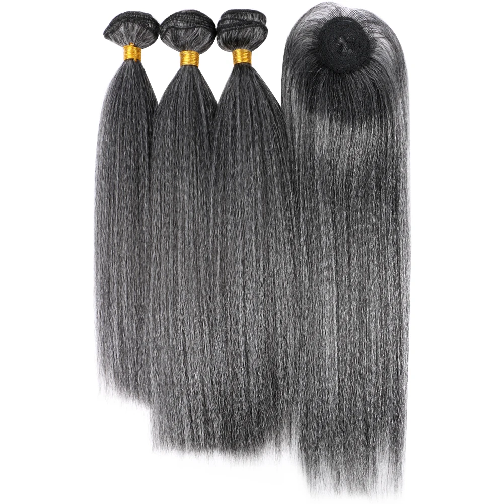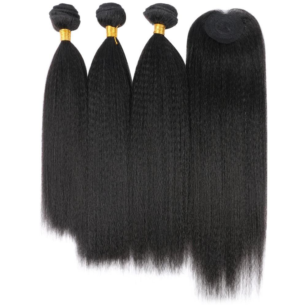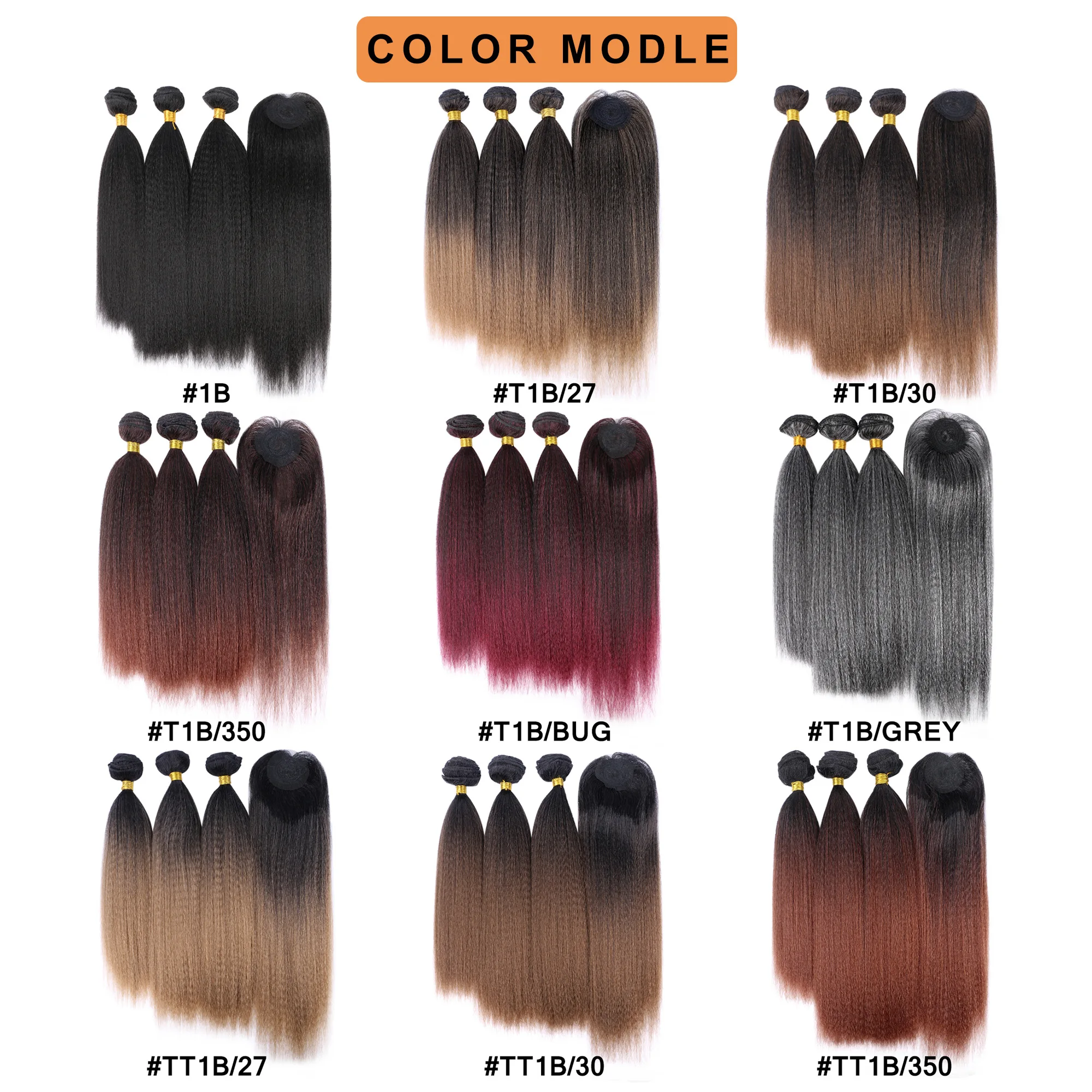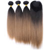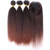 Synthetic Kinky Yaki Straight Hair Weave Bundles With Closure Heat Resisitant Fiber Black Ombre Brown Hair Extensions For Women
