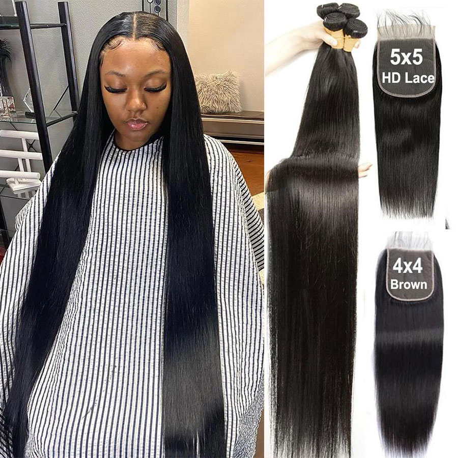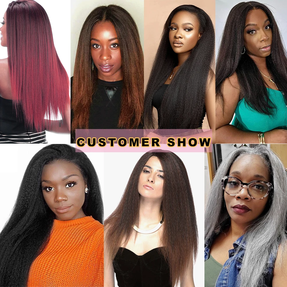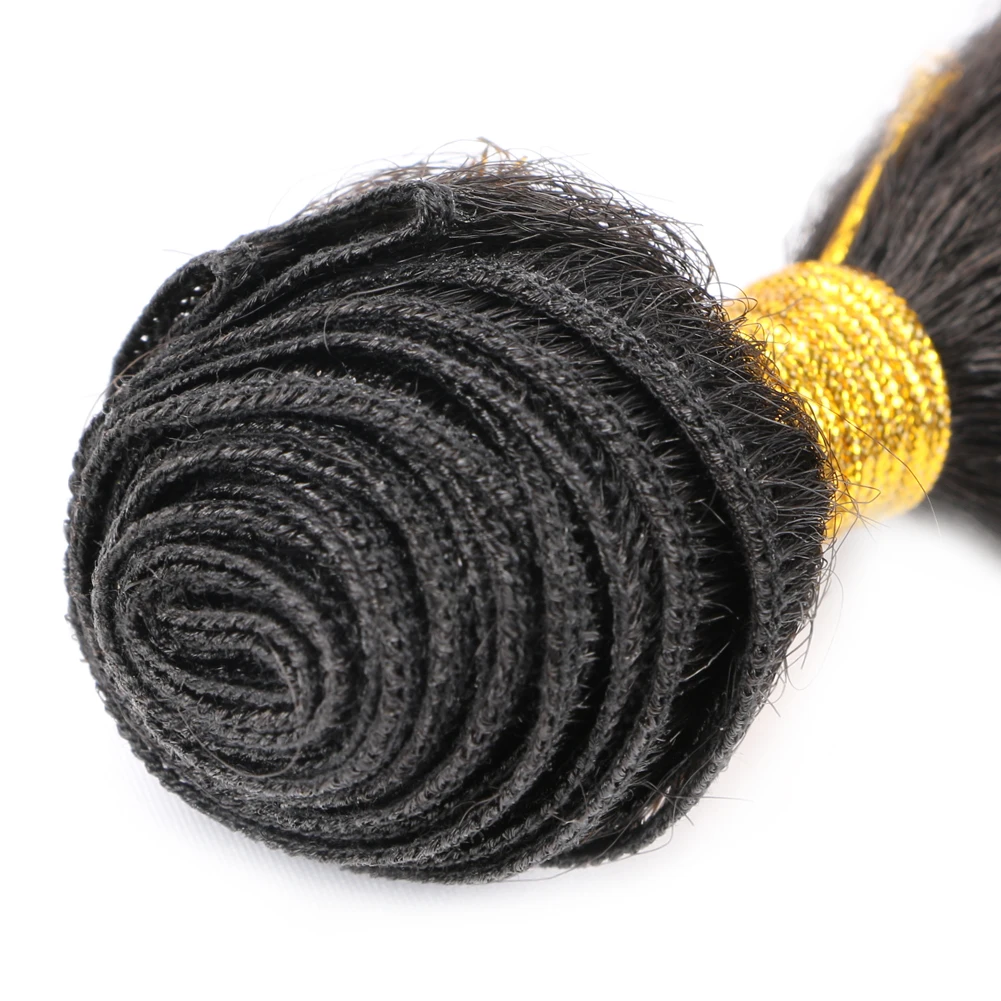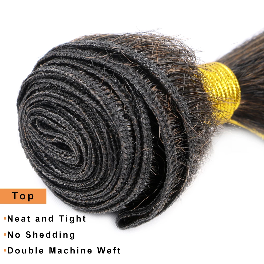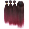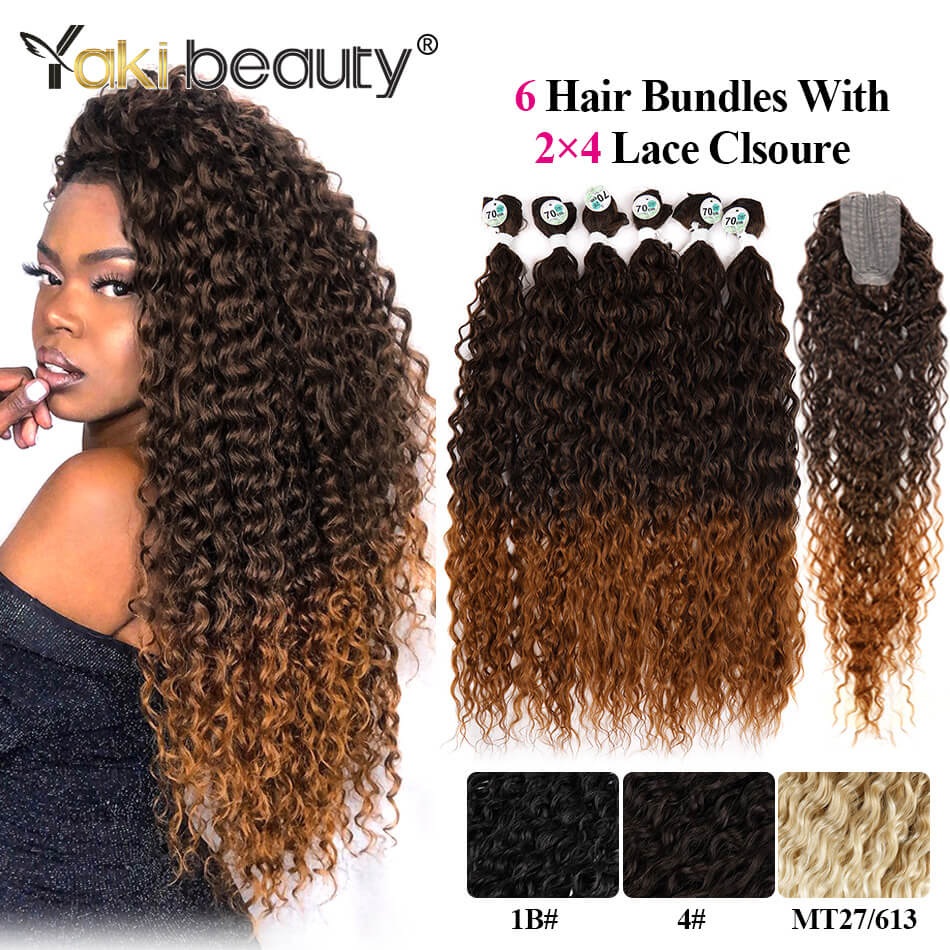 Synthetic Kinky Yaki Straight Hair Weave Bundles With Closure Heat Resisitant Fiber Black Ombre Brown Hair Extensions For Women