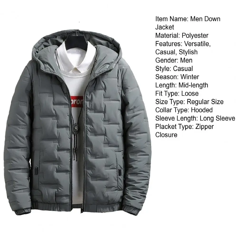 Warm Jacket Winter Men’s Hooded Down Jacket Thick Warm Stylish Coat for Casual Comfort in Solid Colors Casual Versatile Men Down