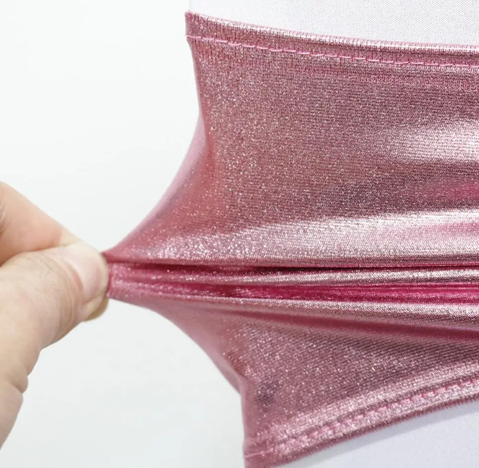 hot sale shiny metallic sash/ band/ shiny ribbon with round buckle,spandex chair sashes for wedding