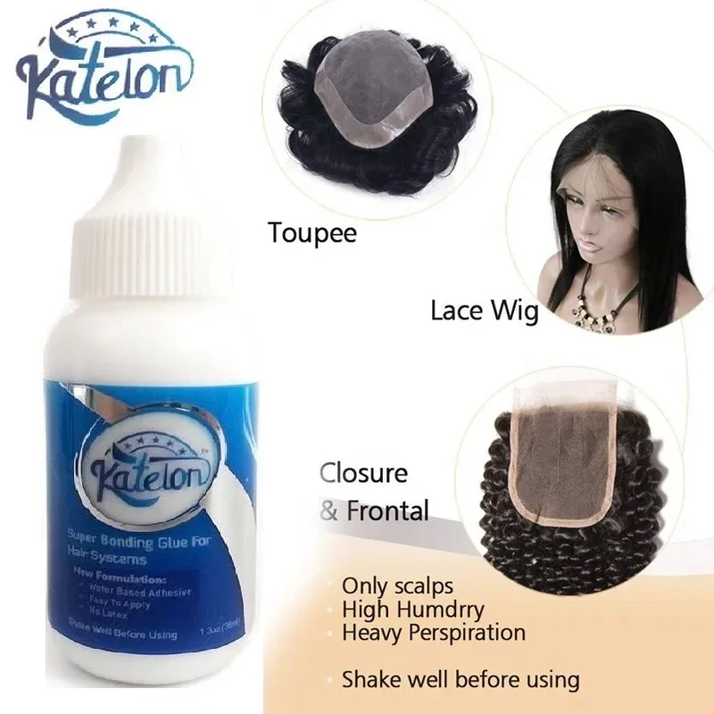 Wholesale Katelon Hair Glue 38ml Toupee lace Wig Professional Invisible Biological Scalp Adhesive Waterproof Remover liquid Set