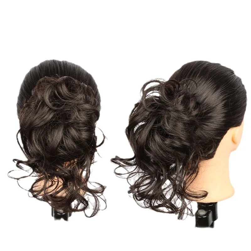 Wig women short ponytail curly hair lazy grab clip flower bun head natural fluffy ponytail human hair cabelo hair