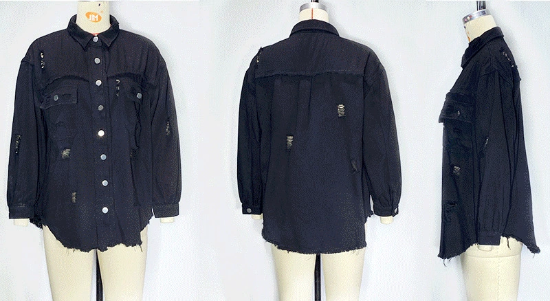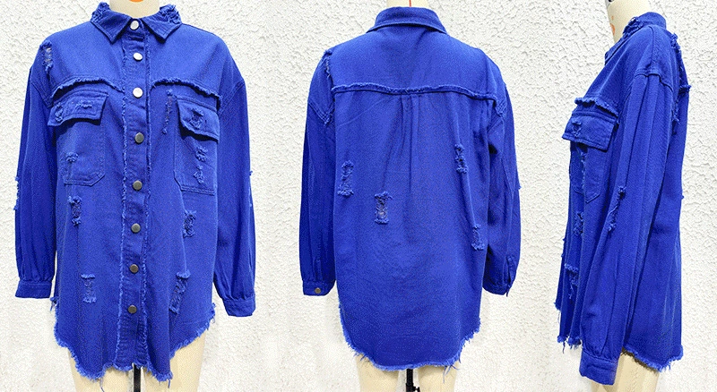 Women Pocket Hole Tassel Turndown Collar Denim Button Casual Boho Full Long Sleeve Spring Winter Cardigan Jacket Coats Outerwear
