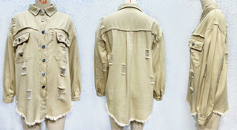 Women Pocket Hole Tassel Turndown Collar Denim Button Casual Boho Full Long Sleeve Spring Winter Cardigan Jacket Coats Outerwear