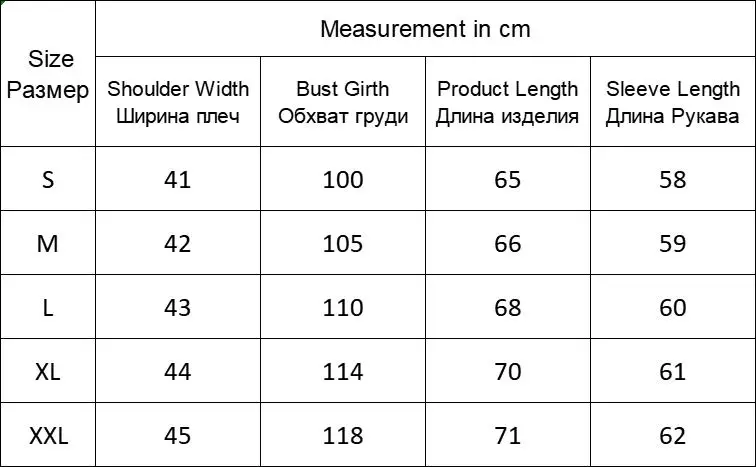 S :Shoulder 41 cm Bust 100 cm  Length 65 cm Sleeves 58 cm